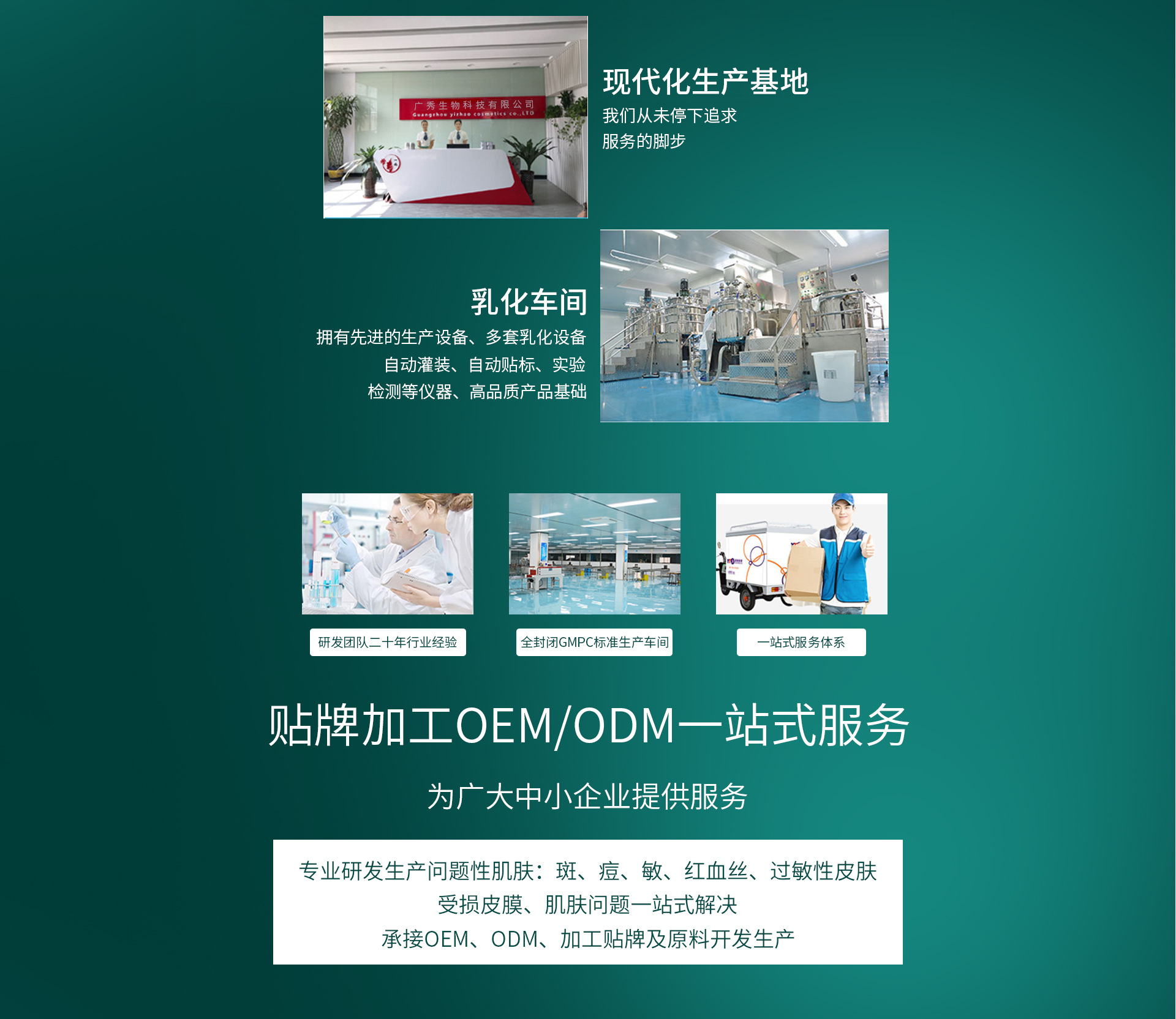 廣州一兆化妝品有限公司,工廠坐落于廣州市花都區芙蓉新花路10號第10棟1、2、3層,為客戶提供專業的OEM/ODM/一站式服務,涵蓋產品規劃、配方開發、包裝設計、功效測試、乳化、灌裝、包裝、倉儲物流等全方位服務。 公司生產車間分2層,3樓為10萬級潔凈車間和倉儲區,2層為辦公區和倉儲區,首層為次拋型產品和手足膜項目生產車間。產區設置有生產區、檢驗、開發區、辦公區、倉儲區、布局科學合理。 本公司擁有一支具有團結進取、具有凝聚力管理團隊,秉承“不斷創新、真誠服務”的企業精神,立志將公司打造成一流的化妝品生產企業。 公司原材料采購遍及世界各大主流產區,目前原料合作單位:日本科瑪公司,美國萊寶公司、美國陶氏DOWCHEMICAL化學、美國LUBRAAOL(路博潤)、瑞士AAK、瑞士ABAC公司等;致力于國內OEM加工國際化、前瞻化、領先化、優質化的企業使命。