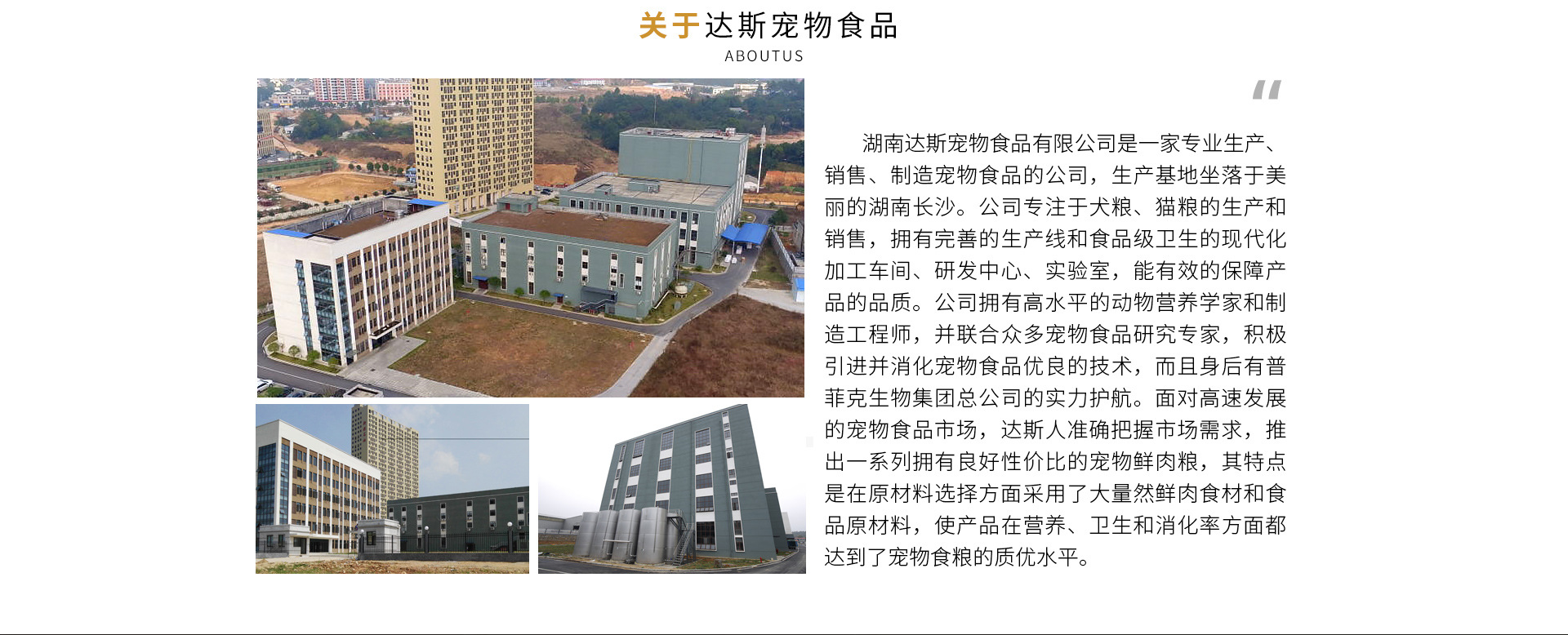 湖南達斯寵物食品有限公司是一家高起點的專業寵物食品公司,生產基地坐落于美麗的湖南長沙。公司專注于犬糧、貓糧的生產和銷售,擁有先進的生產線和食品級衛生的現代化加工車間、研發中心、實驗室,能有效的保障產品的品質。公司擁有高水平的動物營養專家和制造工程師,并聯合眾多寵物食品研究專家,積極引進并消化寵物食品先進技術。面對高速發展的寵物食品市場,達斯人準確把握市場需求,推出一系列擁有良好性價比的寵物鮮肉糧,其特點是在原材料選擇方面采用了大量然鮮肉食材和食品原材料,使產品在營養、衛生和消化率方面都達到了寵物食糧的高水平