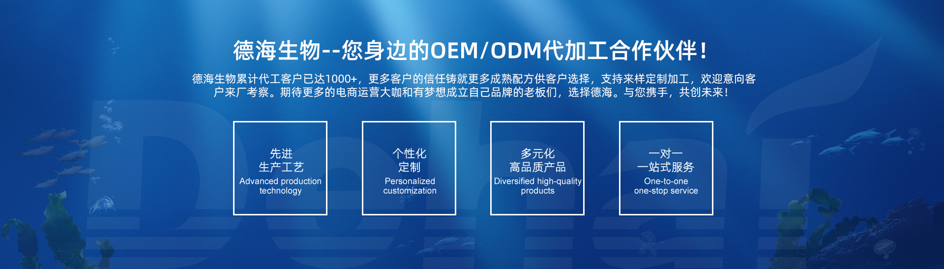 山東德海生物科技有限公司成立于2006年,是集寵物食品、觀賞魚糧、特種水產料生產加工于一體的綜合性企業。企業發展歷史可以追溯到到上世紀八十年代,是國內較早從事研發生產水產料的企業之一。2008年以來,德海生物開始專注于寵物食品及觀賞魚糧的研發與生產,公司擁有具有30多年經驗的水產專家、動物營養學專家組成的研發團隊,從產品生產到銷售,擁有完善的服務體系,多種成熟配方供客戶選擇,支持來樣定制加工,目前代工客戶累計已達1000+,深受廣大客戶的信任。期待更多的電商大咖和有夢想的老板們來廠考察。選擇德海,共創未來!