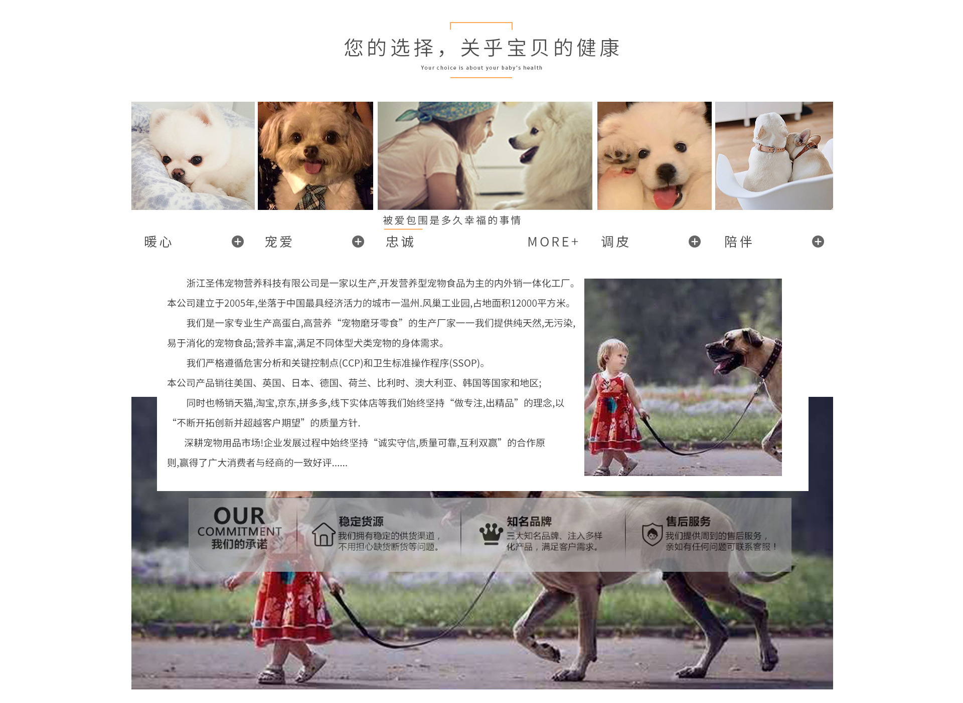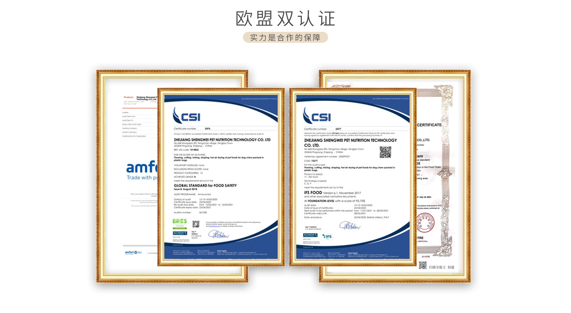 浙江圣偉寵物營(yíng)養(yǎng)科技有限公司成立于2005年,占地12000平方米,擁有250名員工,是一家以生產(chǎn)銷(xiāo)售研發(fā)為一體的專(zhuān)業(yè)制造商。 公司通過(guò)國(guó)際HACCP認(rèn)證體系,有全面的食品安全計(jì)劃,以確保公司的產(chǎn)品體系安全。 圣偉人竭誠(chéng)歡迎您的合作!