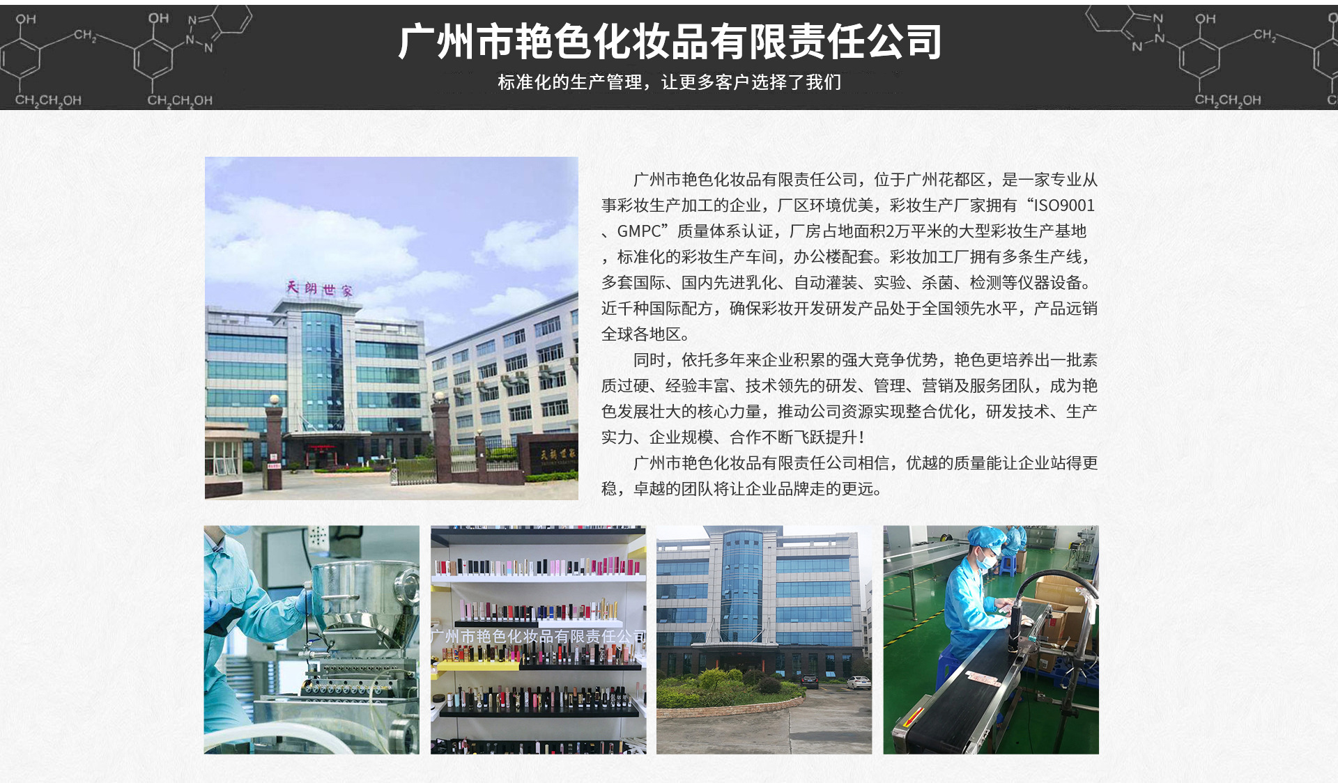 廣州市艷色化妝品有限責(zé)任公司,位于廣州花都區(qū),是一家專(zhuān)業(yè)從事彩妝生產(chǎn)加工的企業(yè),廠區(qū)環(huán)境優(yōu)美,彩妝生產(chǎn)廠家擁有“ISO9001、GMPC”質(zhì)量體系認(rèn)證,廠房占地面積2萬(wàn)平米的大型彩妝生產(chǎn)基地,標(biāo)準(zhǔn)化的彩妝生產(chǎn)車(chē)間,辦公樓配套。彩妝加工廠擁有多條生產(chǎn)線,多套國(guó)際、國(guó)內(nèi)先進(jìn)乳化、自動(dòng)灌裝、實(shí)驗(yàn)、殺菌、檢測(cè)等儀器設(shè)備。近千種國(guó)際配方,確保彩妝開(kāi)發(fā)研發(fā)產(chǎn)品處于全國(guó)領(lǐng)先水平,產(chǎn)品遠(yuǎn)銷(xiāo)全球各地區(qū)。 同時(shí),依托多年來(lái)企業(yè)積累的強(qiáng)大競(jìng)爭(zhēng)優(yōu)勢(shì),艷色更培養(yǎng)出一批素質(zhì)過(guò)硬、經(jīng)驗(yàn)豐富、技術(shù)領(lǐng)先的研發(fā)、管理、營(yíng)銷(xiāo)及服務(wù)團(tuán)隊(duì),成為艷色發(fā)展壯大的核心力量,推動(dòng)公司資源實(shí)現(xiàn)整合優(yōu)化,研發(fā)技術(shù)、生產(chǎn)實(shí)力、企業(yè)規(guī)模、合作不斷飛躍提升! 廣州市艷色化妝品有限責(zé)任公司相信,完美的質(zhì)量能讓企業(yè)站的更穩(wěn),卓越的團(tuán)隊(duì)將讓企業(yè)品牌走的更遠(yuǎn)。