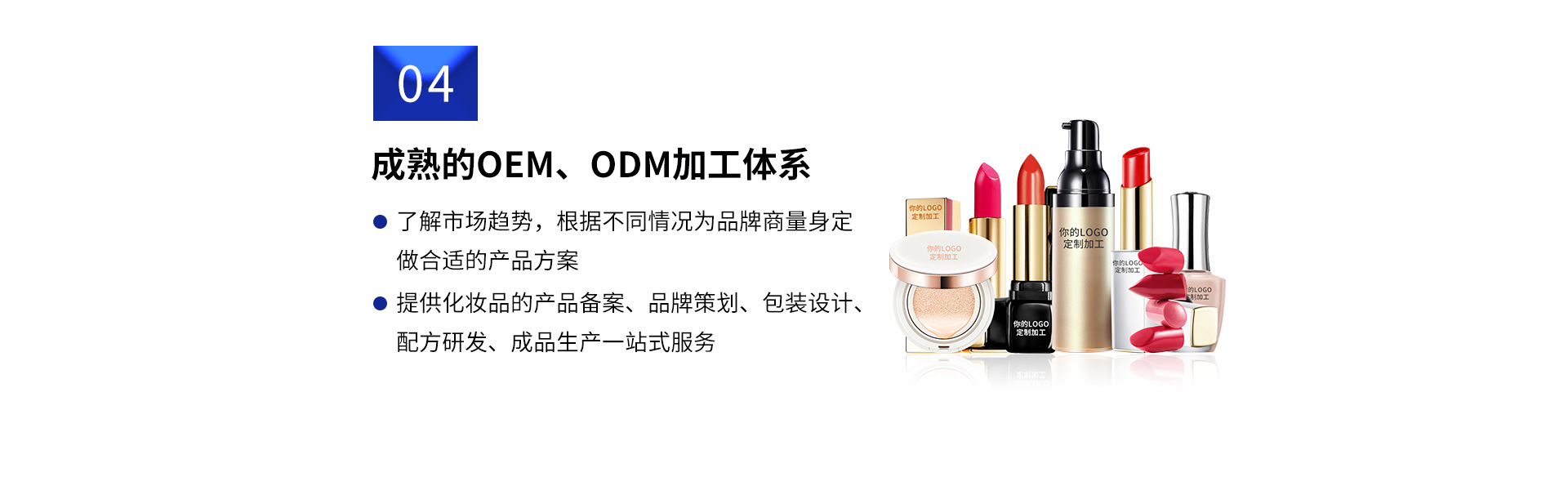 廣州市鋮順化妝品有限公司是一家集研發、生產、銷售為一體的化妝品公司。公司長期致力于彩妝技術的研發,設有眼部、唇部、粉類三條標準化生產線。專業生產中高檔纖長、濃密、卷翹多功能睫毛膏,眼線液、口紅、唇膏、唇油、唇彩、粉餅、粉底、組合化妝品套裝等系列產品,以及市場流行的各類新型化妝品。并能根據客戶不同要求,提供中高檔彩妝品牌的半成品加工(OEM)及相關的代客服務(ODM),制造屬于你自有的品牌產品。 公司位于廣東省廣州市白云區西南工業園,綠樹相擁,環境優雅。經過多年的發展,公司擁有一支有多年產品研發技術和經驗的工程師隊伍及一流的生產設備,每一個產品的配方都經過反復研試,每一道工序都進行嚴格把關以及嚴格的質量管理系統,并通過ISO國際質量管理體系認證,以包裝的創新、品質的獨特而贏得廣大消費者的青睞和信賴。產品遠銷歐美、東南亞以及海內外。 公司始終堅持“以誠為本、信譽第一、客戶至上”的經營宗旨不斷開.