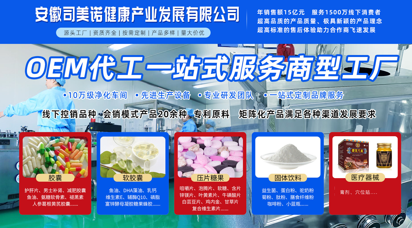安徽司美諾健康產業發展有限公司年銷售額15億元GMV,服務1500萬線下消費者,超高品質的產品質量、極具新穎的產品理念、超高標準的售后體驗助力合作商飛速發展。工廠占地10000平方具備10萬極凈化車間,0EM代工一站式服務商型工廠。經營范圍包括許可項目:藥品生產;藥品委托生產;第二類醫療器械生產;第三類醫療器械生產;醫用口罩生產;藥品生產(不含中藥飲片的蒸、炒、炙、煅等炮制技術的應用及中成藥保密處方產品的生產);食品生產;消毒劑生產(不含危險化學品);用于傳染病防治的消毒產品生產:化妝品生產(依法須經批準的項目,經相關部門批準后方可開展經營活動,具體經營項目以相關部門批準文件或許可證件為準)一般項目:第一類醫療器械生產:第一類醫療器械銷售:第二類醫療器械銷售;食品銷售(僅銷售預包裝食品);保健食品(預包裝)銷售:中藥提取物生產:消毒劑銷售(不含危險化學品);日用化學產品制造;日用化學產品銷售;化妝品批發;化妝品零售;衛生用品和一次性使用醫療用品銷售;醫護人員防護用品生產(1類醫療器械);地產中草藥(不含中藥飲片)購銷;中草藥收購;農副產品銷售;互聯網銷售(除銷售需要許可的商品)。