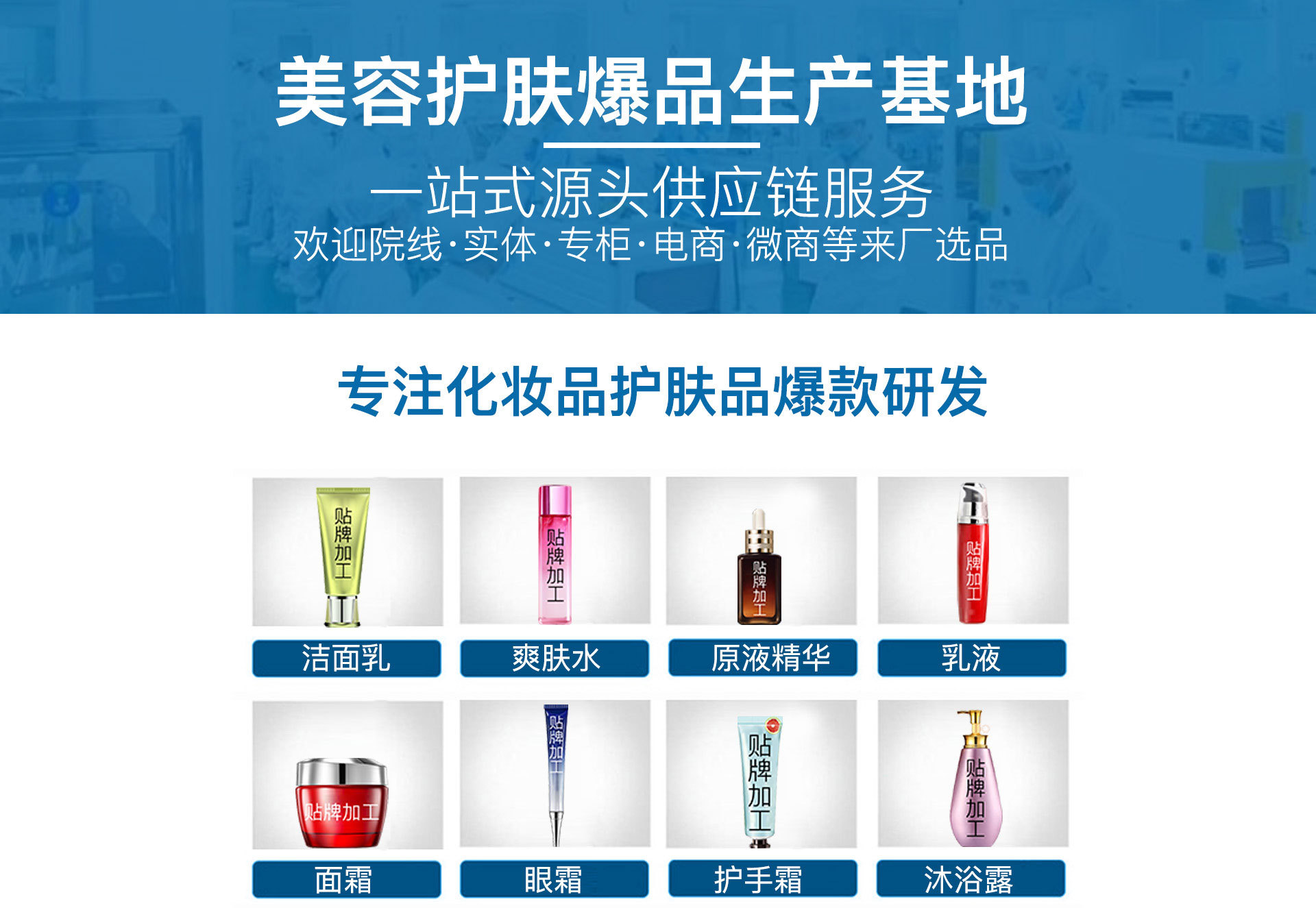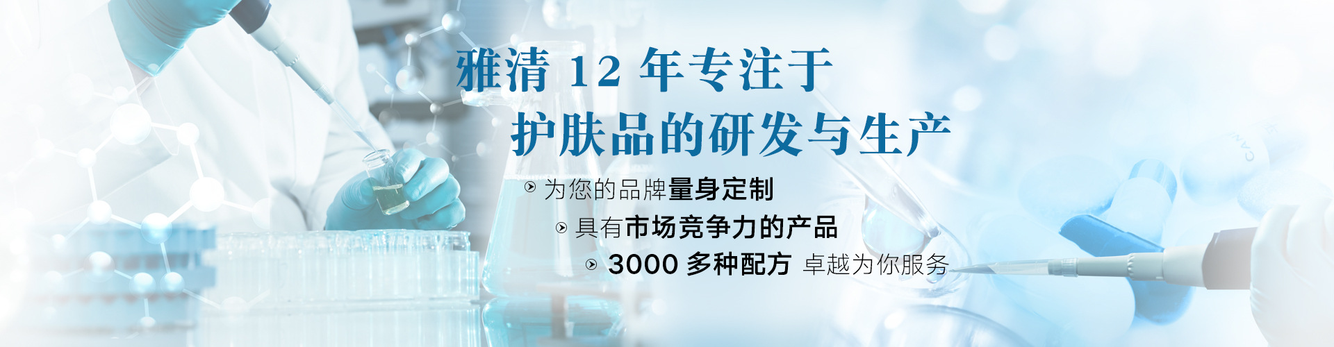 廣州雅清醫藥科技有限公司是集研發、生產、銷售為一體的美容護膚品現代企業。公司在發展中一直以追求在化妝品領域為顧客提供天然無刺激,安全性高的有機綠色化妝品,促進美容護膚的發展。公司生產車間均按國家制藥無菌化標準(GMPC)設計裝修。生產設備、原料均由知名廠商提供。公司擁有一流的實驗室跟先進的工藝現代化的生產技術以用專業的研發人員,確保每一款產品質量均在國家標準以上。公司有專業的營銷人員,以真誠的服務和提供天然安全的產品而受到廣大消費者的歡迎與喜好。本公司擁有專業、高效務實的產品開發和策劃精英團隊,為許多品牌提供量身打造加工服務,包括品牌注冊、產品策劃、配方研發、包裝設計、原料采購、成品生產,產品送檢等全套證件提供服務。真正為客戶做到一站式無憂服務