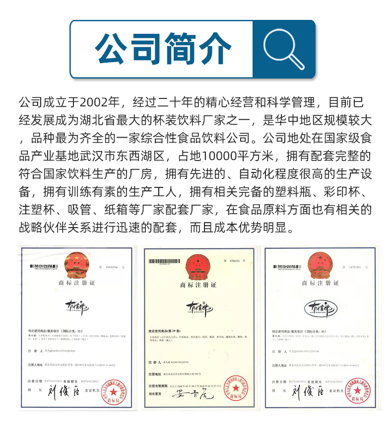 武漢市洛之洲食品有限公司是一家專業生產甜牛奶、植物蛋白、果汁飲料、果味飲料、綠豆冰沙、八寶粥、發酵米酒、銀耳羹等的食品飲料公司,公司成立于2002年,經過二十年的精心經營和科學管理,目前已經發展成為湖北省最大的杯裝飲料廠家之一,是華中地區規模較大,品種最為齊全的一家綜合性食品飲料公司。公司地處在國家級食品產業基地武漢市東西湖區,占地10000平方米,擁有配套完整的符合國家飲料生產的廠房,擁有先進的、自動化程度很高的生產設備,擁有訓練有素的生產工人,擁有相關完備的塑料瓶、彩印杯、注塑杯、吸管、紙箱等廠家配套廠家,在食品原料方面也有相關的戰略伙伴關系進行迅速的配套,而且成本優勢明顯。公司旗下有“洛之洲”、“有情郎”、“小飛俠”等商標,公司生產的產品涵蓋了植物蛋白飲料、發酵型米酒、果味飲料、綠豆冰沙、發酵乳、八寶粥、銀耳羹方便食品等六個品類的多層次產品,公司生產的產品選料優質、精心制作、品味獨特、質量上乘,所有產品由中國人民保險承保,產品暢銷全國各地,深受廣大消費者喜歡。公司現在有剩余的生產能力,歡迎全國廣大客戶過來考察,洽談代工生產事宜。