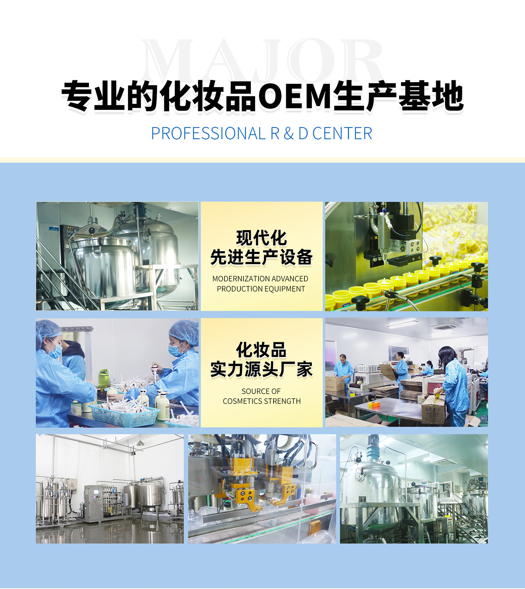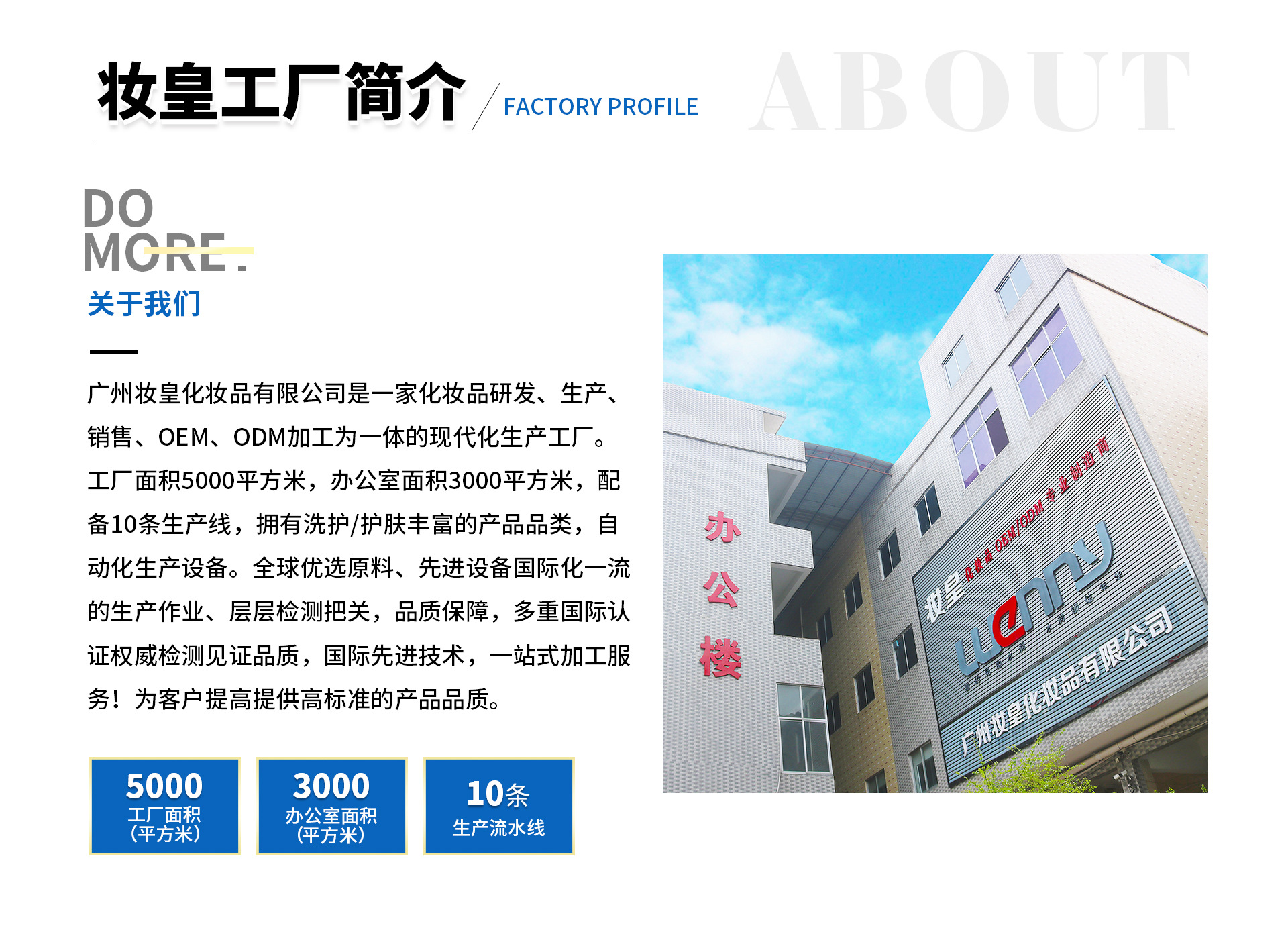 廣州妝皇化妝品有限公司是一家集研發與銷售為一體的創新高科技企業。強大的產品研發背景:專業的研發團隊、一流的醫學實驗室、及人體健康研究中心, 使其不斷推出適應全球消費者不同需求的功效型洗護產品。 若影秉承:愿天下人,青絲如墨的發展使命,致力于解決現代人的各類發絲煩惱,拯救白發危機, 解決脫發尷尬,重塑頭上風景。為實現“共贏創富”的企業愿景,若影致力于打造移動互聯網創業平臺,發展線下實體終端,通過不斷的市場推廣與發展,實 現多樣化的營銷渠道,讓產品能夠更加迅速的為消費者所熟知和使用,同時也為消費者提供更快捷、更便利的消費模式,抱團時代,妝皇愿與你攜手共創輝煌, 共贏致富!妝皇洗護系列:是采用純天然植物萃取精華、利用國際領先專利配方研發而成的,高端洗護品牌,在業內是一家迅速發展、日新月異的科技創新型 品牌公司。我們堅守,純天然成分的高品質產品,視質量為生命,為中國萬千脫發、白發患者提供全新的健康