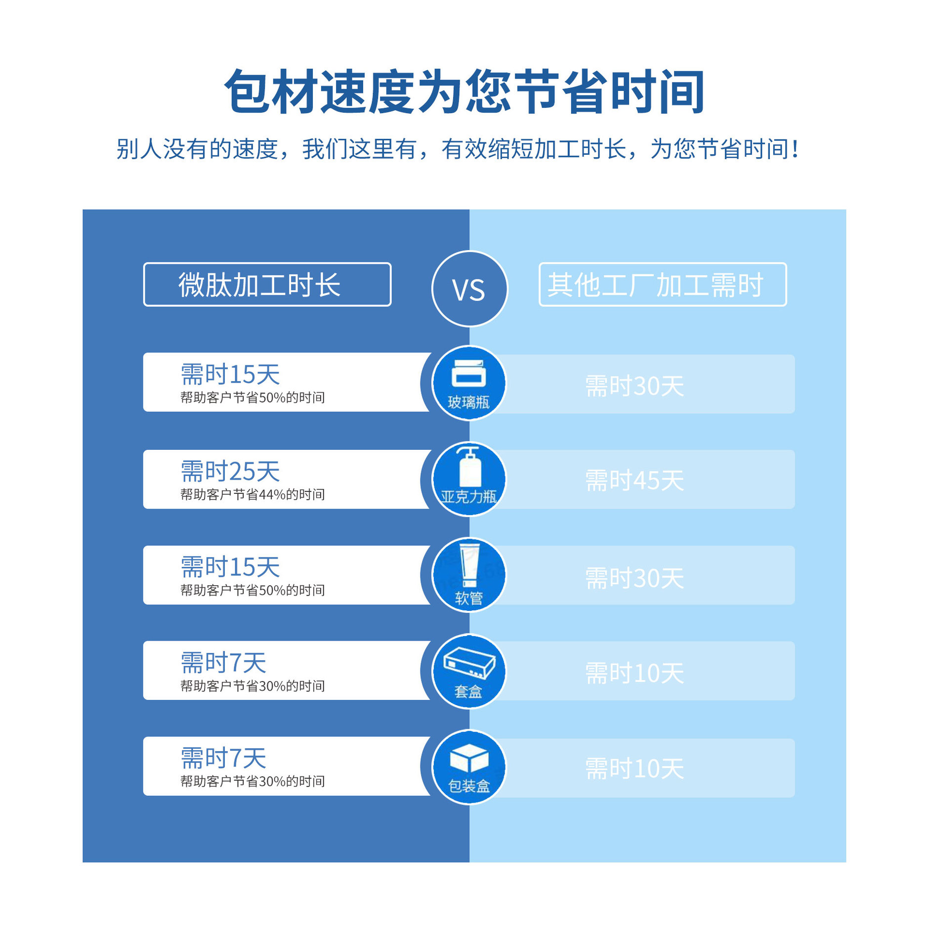 廣州微肽生物科技有限公司,是護(hù)膚類產(chǎn)品、面膜類產(chǎn)品、身體類產(chǎn)品、微商化妝品加工、OEM化妝品加工,ODM化妝品加工,網(wǎng)購(gòu)化妝品加工等產(chǎn)品專業(yè)生產(chǎn)加工的公司,擁有完整、科學(xué)的質(zhì)量管理體系,是集化妝品研制開(kāi)發(fā)、生產(chǎn)制造、技術(shù)服務(wù)、OEM/ODM品牌加工四位一體化的專業(yè)工廠,微肽生物更是通過(guò)了歐盟ISO22716和美國(guó)GMPC雙重認(rèn)證。工廠坐落在環(huán)境幽雅、交通便捷位于廣州市白云區(qū)白云湖街道大朗村15社77號(hào)。