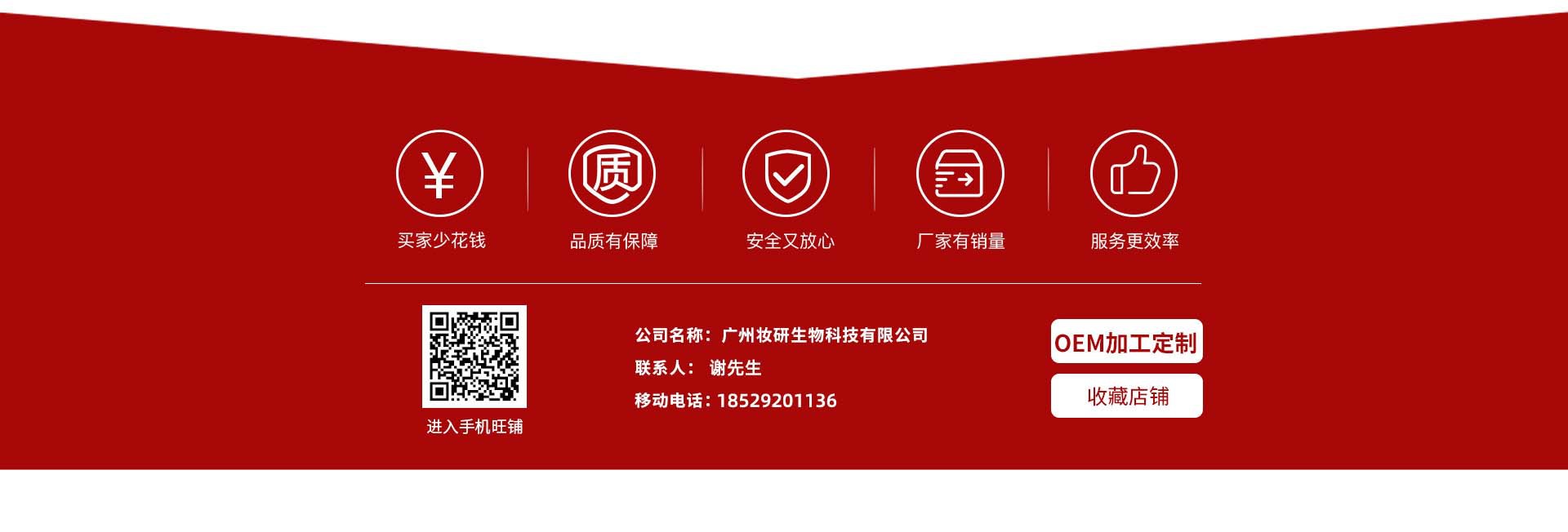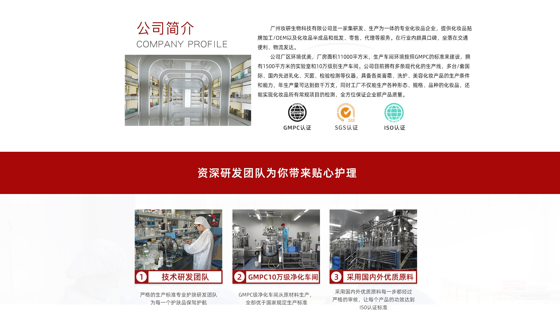 廣州妝妍生物科技有限公司是一家集研發(fā)、生產(chǎn)為一體的專業(yè)化妝品企業(yè),提供化妝品貼牌加工/OEM以及化妝品半成品和批發(fā)、零售、代理等服務(wù)。在行業(yè)內(nèi)頗具口碑,坐落在交通便利、物流發(fā)達(dá)。 公司廠區(qū)環(huán)境優(yōu)美,廠房面積11000平方米,生產(chǎn)車間環(huán)境按照GMPC的標(biāo)準(zhǔn)來建設(shè),擁有1500平方米的實驗室和10萬級別生產(chǎn)車間。公司目前擁有多條現(xiàn)代化的生產(chǎn)線,多臺/套國際、國內(nèi)先進(jìn)乳化、滅菌、檢驗檢測等儀器,具備各類膏霜、洗護(hù)、美容化妝產(chǎn)品的生產(chǎn)條件和能力,年生產(chǎn)量可達(dá)到數(shù)千萬支,同時工廠不僅能生產(chǎn)各種形態(tài)、規(guī)格、品種的化妝品,還能實現(xiàn)化妝品所有常規(guī)項目的檢測,全方位保證企業(yè)額產(chǎn)品質(zhì)量。