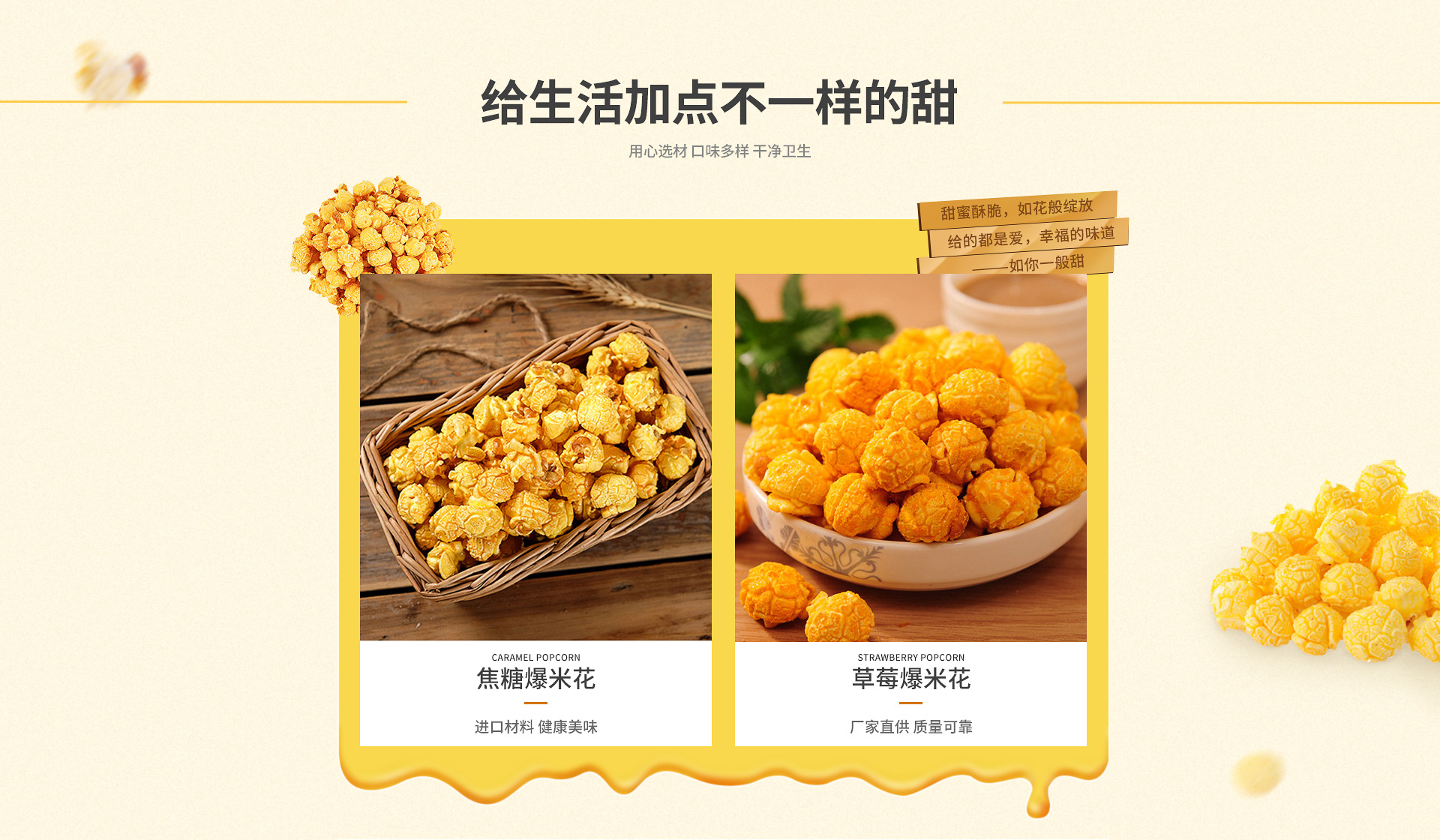 六安市金果兒食品成立于2014年 本公司主要生產膨化食品,爆米花,餅干 鍋巴為主的企業,工廠生產面積1500平米。