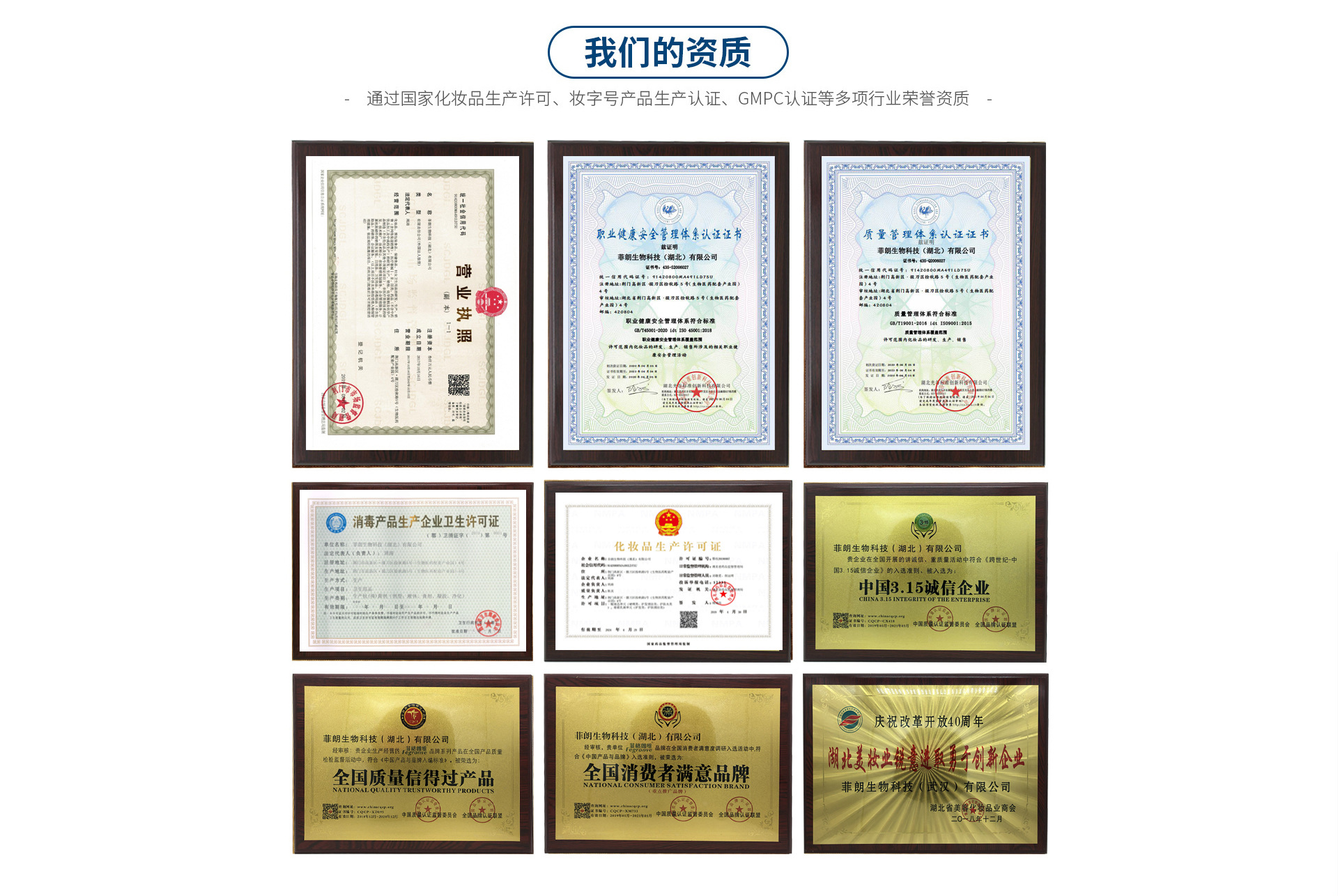 菲朗生物科技(湖北)有限公司是一家集研發、 生產、銷售、服務、教育、美容及養生于一體的省級高新技術企業,涵蓋護膚、日化、培訓學校、特色農業等領域。 公司以科研為龍頭,開發為基礎,應用為目的,質量為根本,消費者為核心,立足行業發展特點,構建企業的優質發展體系,并與韓國高麗大學、武漢理工大學、華中農業大學等知名高校開展校企合作,聯合國際知名機構設立專項研發中心。 菲朗生物科技建有先進的研發生產一體化的生產基地,妝字號與消字號10萬級高清潔度無菌生產車間,配套多臺國際國內先進乳化自動灌裝滅菌及檢驗檢測儀器。檢測技術先進完備,品質安全有保障。采用尖端科學技術成果研制和開發,為消費者提供完美產品和最優質服務。