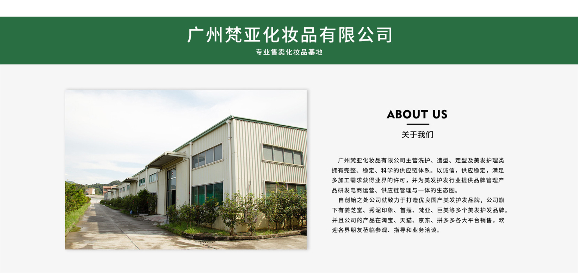 廣州梵亞化妝品有限公司是一家專業從事日化產業集產品研發、生產、銷售和服務一體化的企業型集團,于2008年在廣州成立。旗下擁有姜芝堂,秀泥印象,首蔻等多個消費品細分領域知名品牌,產品覆蓋香氛、洗護發、護膚、美妝、和家居護理等多個領域。 梵亞高度重視自主創新,增持科研投入,與重視產能結構調整,與行業知名OEM及ODM工廠達成戰略合作伙伴關系,不斷優化產線,以國際標準產出每一款產品。 讓每一天更美好,為消費者提供更優質的產品和服務,是梵亞化妝品公司的真摯承諾。在未來公司將持續加大在品牌研究和產品研發方面的投入,立志為中國創造出一個世界級的消費品聚合集團。