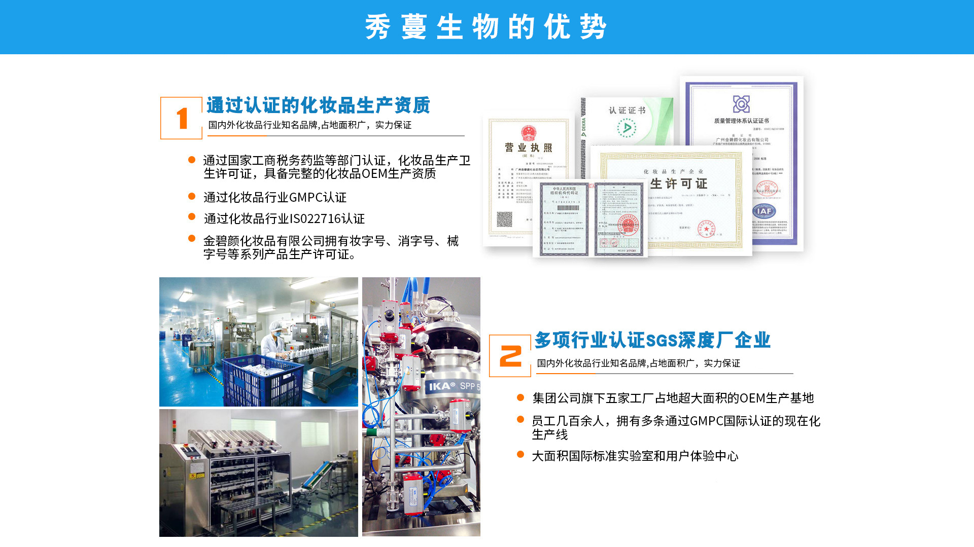 廣州金碧顏化妝品有限公司是中國專業(yè)的化妝品OEM/ODM企業(yè),嚴格按照GMPC標準建立的化妝品生產(chǎn)公司,采用先進的生產(chǎn)技術(shù)和現(xiàn)代化的生產(chǎn)設備,是一家致力于研發(fā)、制造、營銷、服務為一體的綜合型化妝品企業(yè)。公司主打“溫和抗衰,留住青春”的理念,在技術(shù)方面取得顯著研發(fā)成果,工程師將四類抗衰老原料:清除自由基類、細胞修復類、以及保濕類進行組合,公司已經(jīng)具備完整符合要求的抗衰老體系。廣州金碧顏化妝品有限公司的誠信、實力和產(chǎn)品質(zhì)量獲得業(yè)界的認可。歡迎各朋友蓓臨參觀、指導和洽談