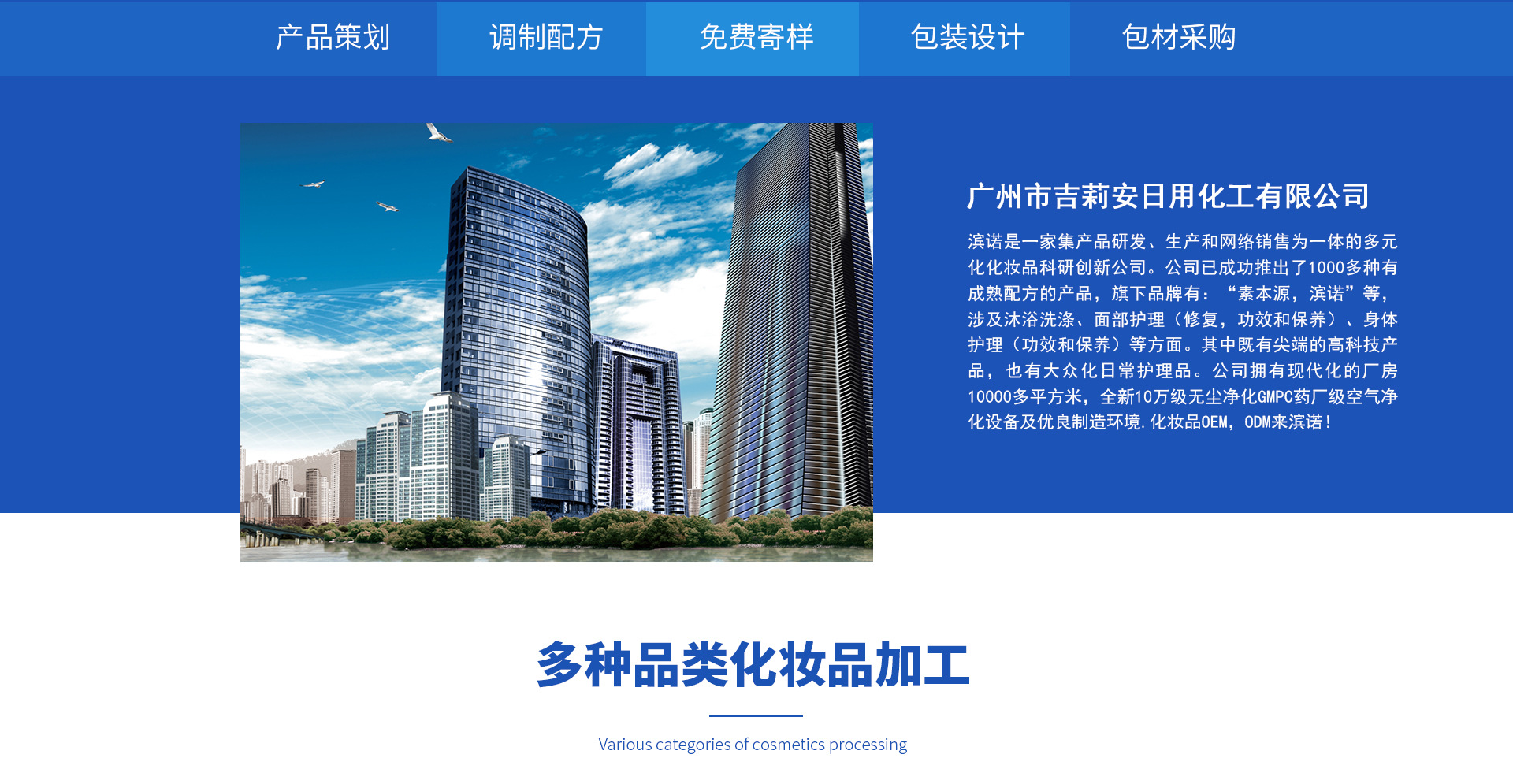 廣州市吉莉安日用化工有限公司成立于一九九九年,是一家集研發、生產及銷售為一體的專業化妝品OEM/ODM貼牌加工企業,在行業內頗具口碑、影響力。公司擁有近十多年的研發、生產、銷售經驗,一直將安全、品質、服務放在首要位置。 公司注重人才建設,擁有一批高素質的技術人員,高級行政管理人員、策劃人員、銷售人員等。從最初的十幾人到如今的百余名員工,發展步伐不斷加快。 公司本著“開拓進取,精益求精”的創業精神,吸取中外科研精華,致力于美容護膚品、洗滌產品的開發和推廣。近年來,為滿足大眾對美的追求,公司加大新產品開發,在原有的貝歌絲品牌、詩高純品牌、嘉菲貝絲品牌、柏妝品牌、小嘉珺品牌產品的基礎上,近期又開發了新產品詳情請參閱“產品展示”和“新品推薦”,并繼續以“高品質、高標準、高品位”面向大眾,服務消費者。 伴隨著時代的進步,吉莉安將一如既往的為人類皮膚的健康美麗做出不懈的努力。