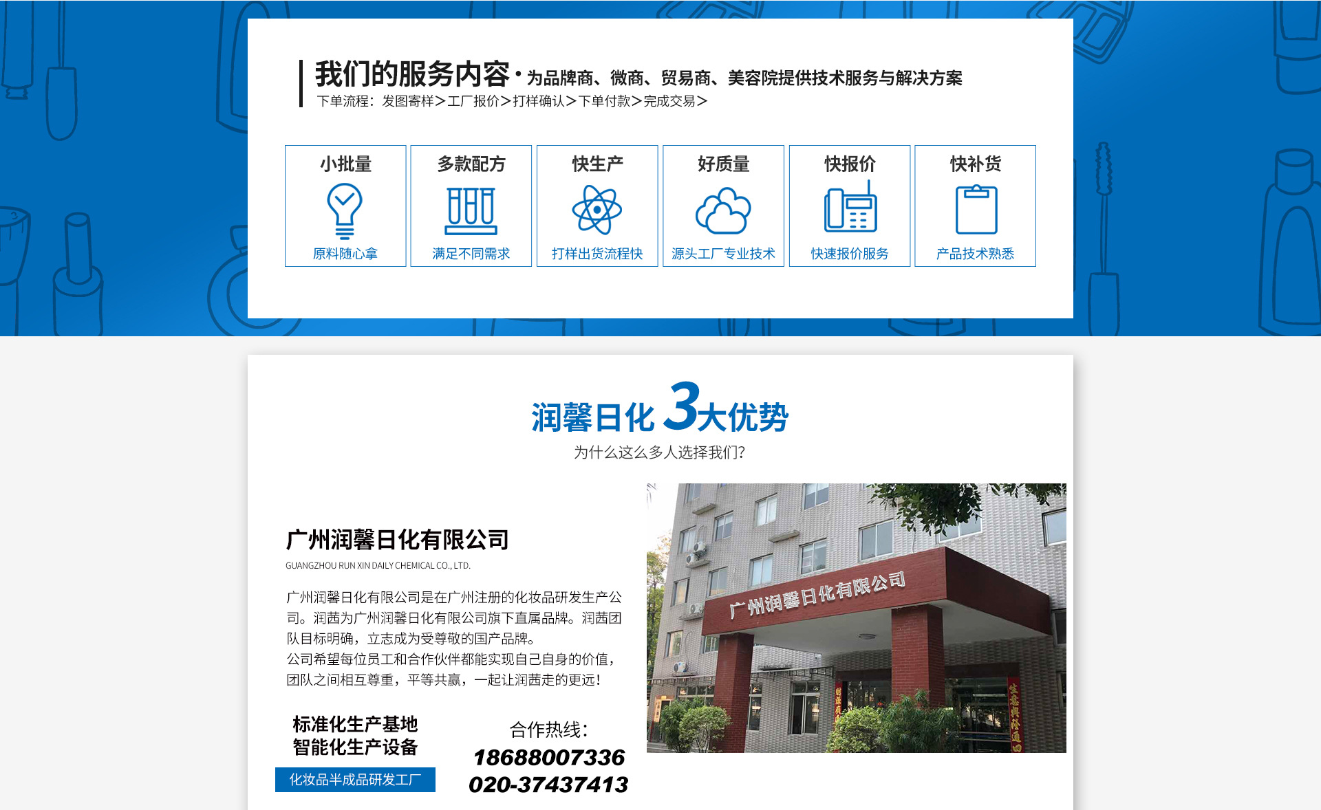 廣州潤馨日化有限公司是一家集科。研開發、生產、銷售、OEM加工于一體的中型企業,具有十幾年生產經驗的化妝品企業,擁有“佳芬”、“潤茜”等知名品牌;公司擁有現代化綠色環保生產廠房,先進的自動化生產設備,專業的技術管理力量,主要生產:底妝、護膚、洗滌等系列化妝品。 公司本著“誠信為本,顧客至上”;生產合格安全的產品,持續 改進;對消費者健康負責,遵守法律法規要求,生產高品質產品的經營理念,塑造高雅的品牌形象,產品銷售國內各大、市場,具有較高的知名度和美譽度。 本公司從成立到至今,我們不斷完善服務架構,以及對管理方面的提升,更好的提供對廣大客戶的優質服務,我們懷著共同的信念和追求,用愛讓世界美麗健康,讓我們攜手共創未來。 地址:廣州市白云區太和鎮北太路草塘路6號路