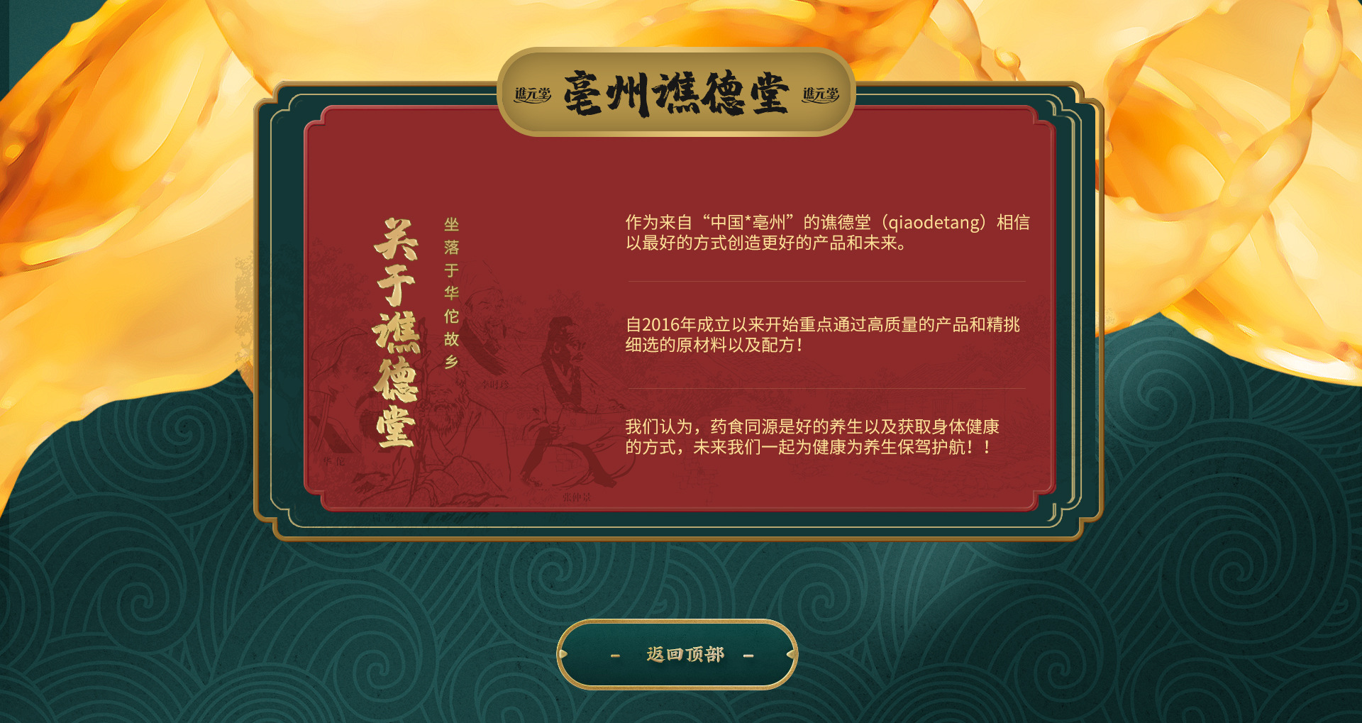 亳州市譙德堂生物科技有限公司、是一家專業(yè)生產(chǎn)養(yǎng)生花草茶的企業(yè)公司。位置在于亳州市五馬鎮(zhèn)芍花村、 自2018年以來企業(yè)迅速猛起創(chuàng)新發(fā)展、公司一直注重產(chǎn)品的質(zhì)量問題 每一種原料都是符合國家標準藥食同源里面的原料、都是經(jīng)過嚴格把關。 我們有專業(yè)的研發(fā)人員去合理配比科學的配方、 我們認為藥食同源是最好的養(yǎng)生以及獲取身體健康的方式 、未來我們一起為健康和養(yǎng)生保駕護航! 作為來自”中國“”亳州“的譙德堂、相信以最好的方式創(chuàng)造更好的產(chǎn)品和未來。