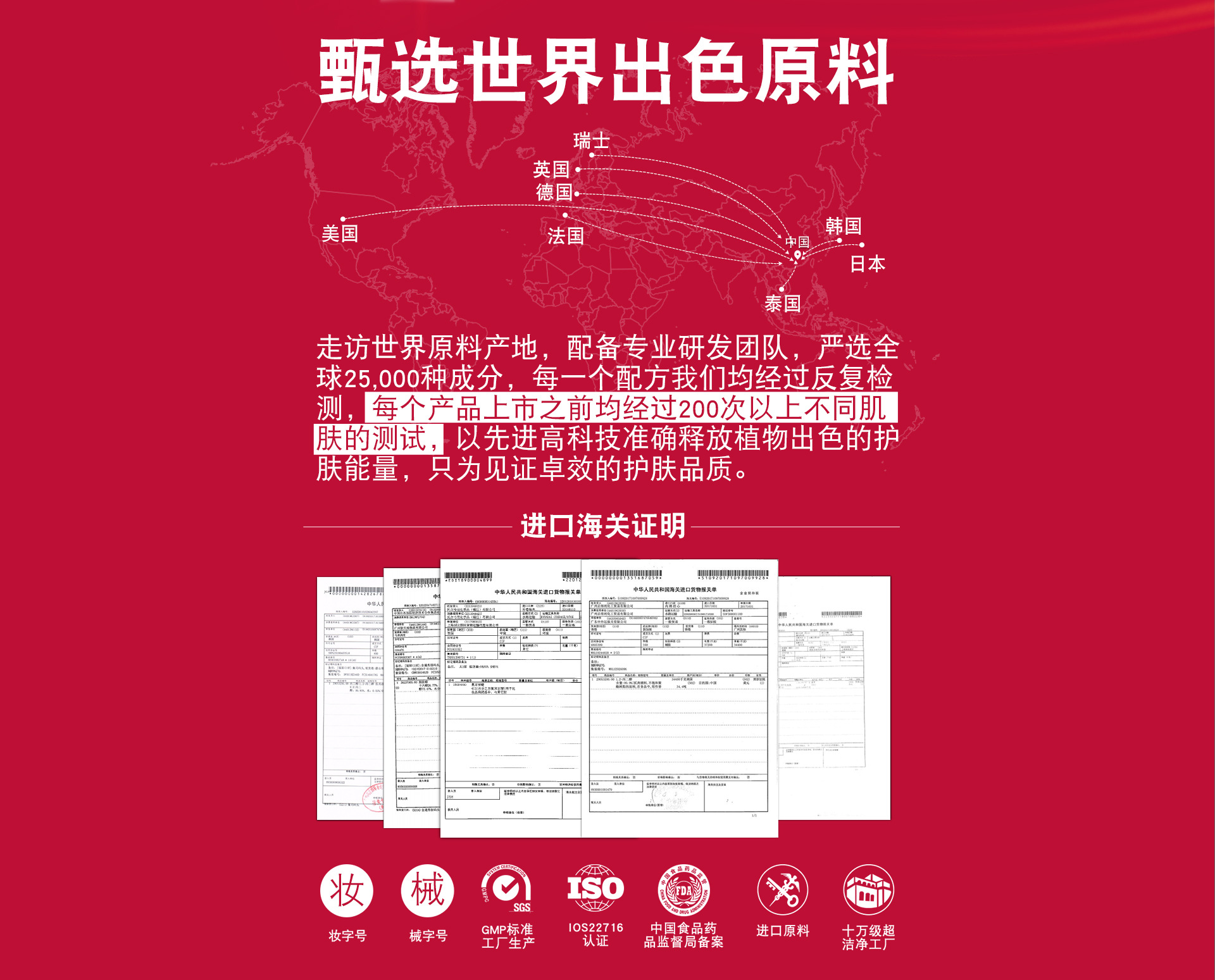 廣州韓素生物科技有限公司、復(fù)大集團(國際)控股與全球多個商業(yè)組織、 大學(xué)建立了技術(shù)合作關(guān)系,投資總額超過10億元人民幣。 其中包括北京大學(xué)、中國科學(xué)院等。擁有一大網(wǎng)絡(luò)科技機構(gòu),兩大科研中 心機構(gòu),三大生產(chǎn)基地,四大生產(chǎn)資質(zhì),七大子公司,也是國內(nèi)目前實力 雄厚、規(guī)模大、具有發(fā)展?jié)摿Φ慕】得廊萜髽I(yè)之一。另外,公司聘有10多 位中國頂尖級生命科學(xué)專家,協(xié)助解決各種專業(yè)技術(shù)問題與科研開發(fā)工作。 如今上海悠芙化妝品有限公司歷經(jīng)9年,已發(fā)展到旗下?lián)碛衅叽笃放频男?型中國本土化妝品企業(yè),并開辟了阿里巴巴、京東、天貓等多品牌旗艦店, 當中面膜、爽膚水等類目產(chǎn)品在全國天貓化妝品店鋪中已經(jīng)遙居前三位。 2018年10月,成為淘寶天天特價“C2M定制超值優(yōu)選計劃”第一批合作伙伴! 2019年6月,“繽肌”品牌受邀入駐天貓超市!