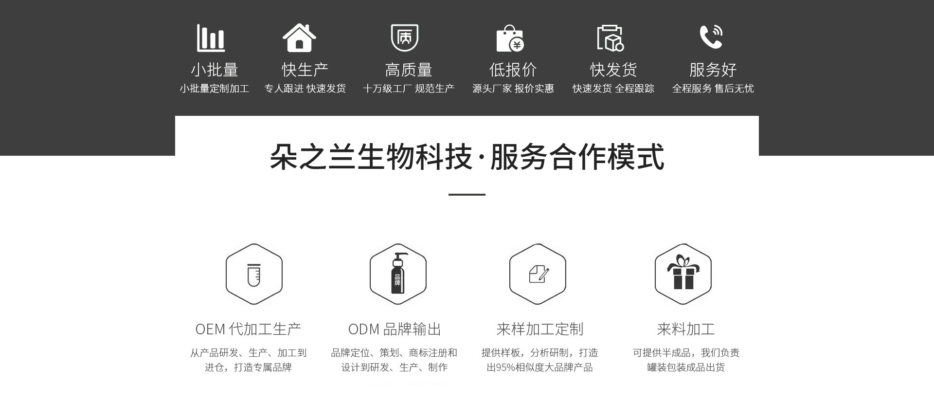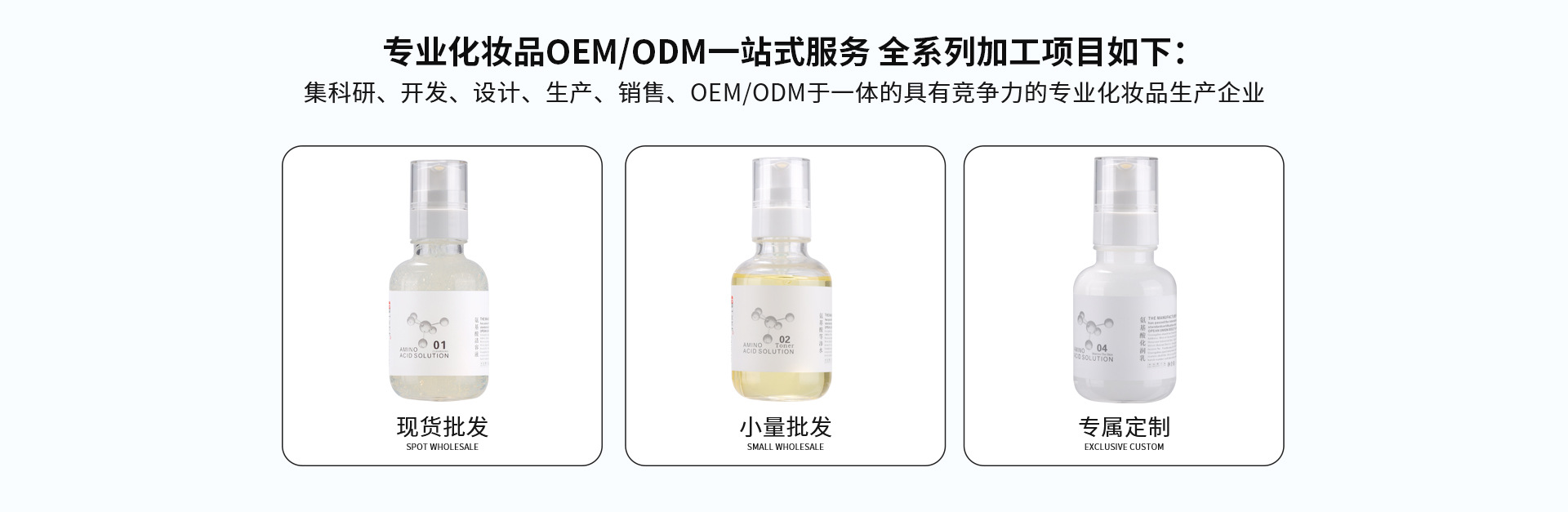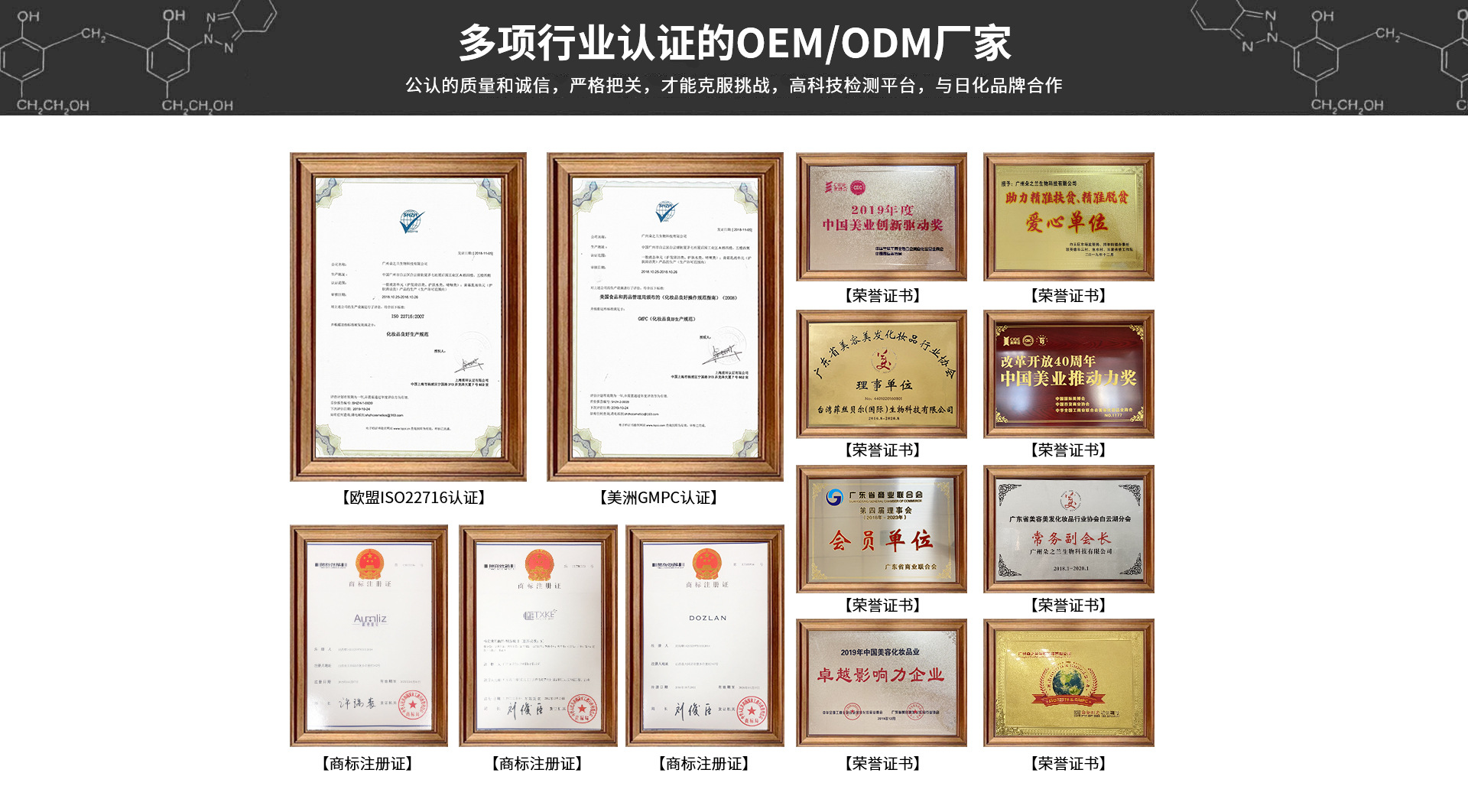 朵之蘭生物科技有限公司是一家專門從事高端美膚產(chǎn)品專業(yè)生產(chǎn)制作,引進德國、韓國、日本、臺灣進口原材料,采用臺灣最新技術(shù),安全無副作用,國際一流的十萬級潔凈無塵車間現(xiàn)代化生產(chǎn)基地,全套進口的先進設(shè)備和同國際接軌的先進技術(shù),本企業(yè)已通過歐盟ISO22716&美洲GMPC國際標(biāo)準(zhǔn)認(rèn)證。公司擁有一批經(jīng)驗豐富的科研技術(shù)人員,一流的管理人員及專業(yè)的作業(yè)人員,專為國內(nèi)外著名品牌OEM/ODM/OBM加工,是一家從事化妝品研發(fā)、生產(chǎn)、銷售、服務(wù)為一體的專業(yè)化妝品企業(yè),致力于為客戶實現(xiàn)自己的品牌夢想;