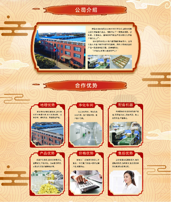 安徽草本固源藥業公司位于中國四大藥都之首的安徽亳州,隨即開辦了一家集袋泡茶,調味茶,方便食品,固體飲料四類生產線的現代化養生產品加工工廠。 針對目前市場上養生產品質量的參差不齊,公司創始人本著中醫固有的醫德精神,把給人帶來健康的產品一定要做到高質量,高食用安全。中國中醫是老祖宗留給我們的寶,我們有責任有義務把它發揚下去,讓中醫的偉大更好服務于全人類,目前中國中醫不缺人才,但是缺少優質的中藥材及良心的加工企業,由于農業殘留和環境污染等問題,好的地道的中藥原材如同鳳毛麟角,這也也大大的削弱了中醫配方的功效,公司工廠本著良心原料,良心工藝出良心產品的原則,以“只做自己和家人敢用的產品”為質量根本,從而讓公司的產品更好的為人類健康服務。 公司也真誠的想與志同道合的人和企業合作,把中國中醫精神和中醫精髓發揚光大,讓中草藥的加工源頭更規范,更安全,把綠色,健康,地道的原材料更好的發揮!