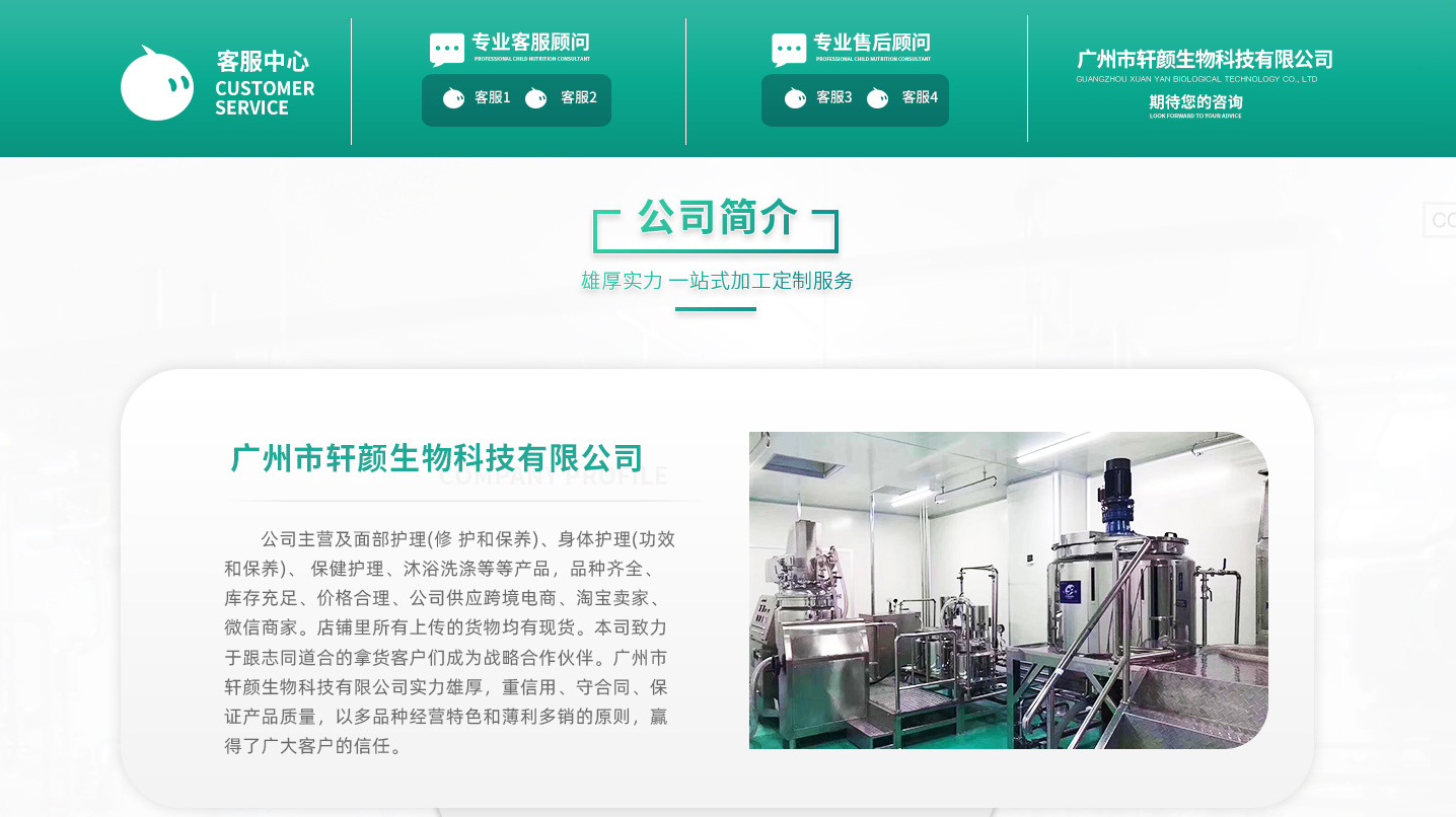 廣州市軒顏生物科技有限公司是一家集研發(fā)、實(shí)驗(yàn)、生產(chǎn)為一體的專業(yè)化妝品企業(yè),是一家從事化妝品研發(fā)、生產(chǎn)、銷售、服務(wù)、OEM/ODM/OBM于一體的專業(yè)化的大型加工工廠,帝屬于廣州宸極生物科技旗下公司,硬件優(yōu)勢(shì) ?1、生產(chǎn)環(huán)境:十萬(wàn)級(jí)無(wú)塵凈化車間,萬(wàn)級(jí)理化實(shí)驗(yàn)室。2、生產(chǎn)設(shè)備:全新設(shè)備及最新的面膜機(jī)等。3、產(chǎn)品原料:全球十強(qiáng)原料供應(yīng)商指定供應(yīng)。4、新產(chǎn)品研發(fā):專業(yè)化的工程師團(tuán)隊(duì)。5、生產(chǎn)質(zhì)量:萬(wàn)級(jí)的理化實(shí)驗(yàn)室,來(lái)料檢驗(yàn)、半成品及成品檢驗(yàn)、第三方檢驗(yàn)。