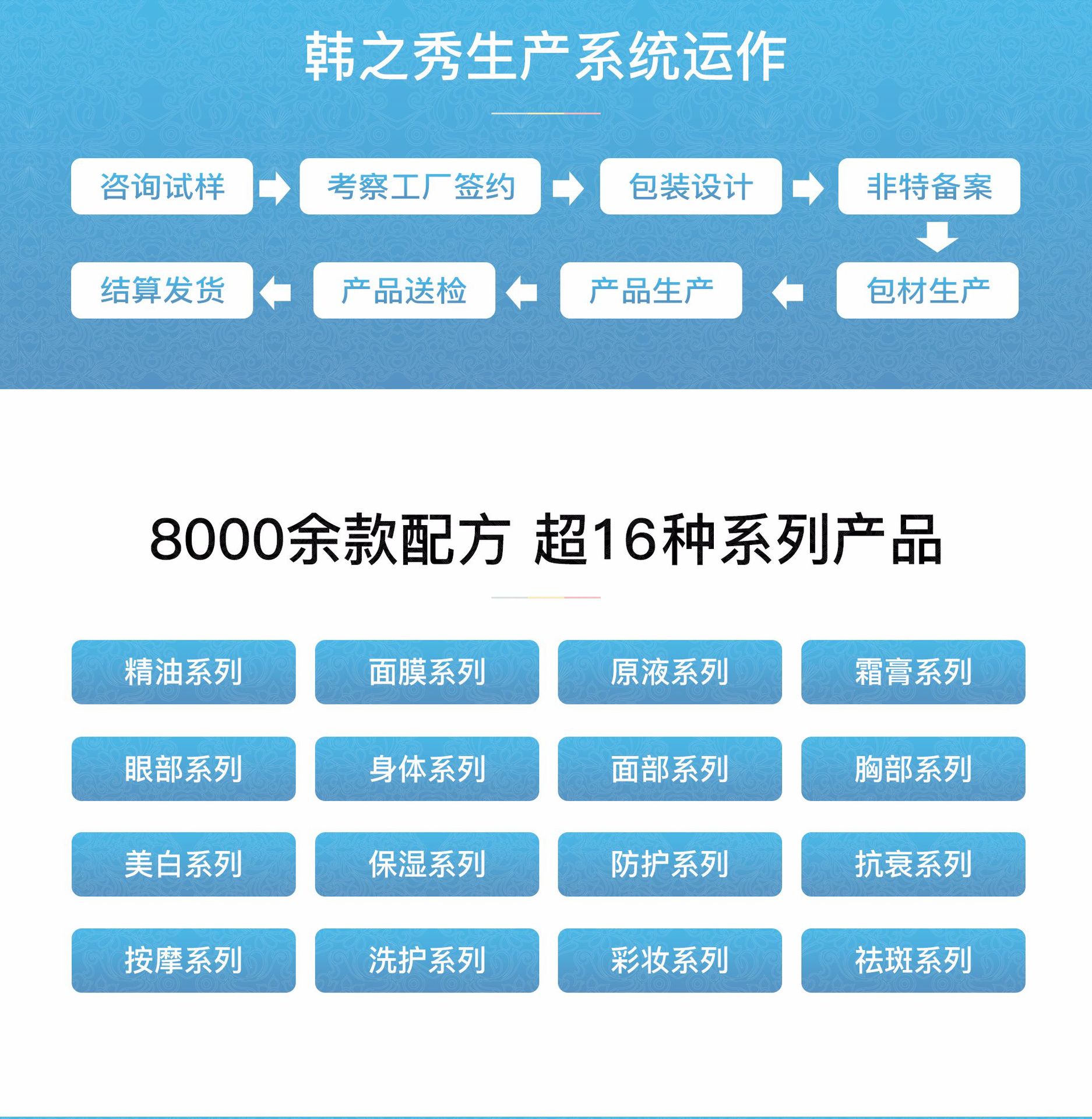 廣州韓之秀化妝品有限公司是一家大型工廠,歷經了10年的發展已成為一家具有國際化專業水平的化妝品研發、生產商,坐落于廣州白云區,廠區面積近10000㎡,多年來以嚴謹專業、優質卓越享譽業界。是化妝品OEM加工、洗面奶OEM加工、護膚品oem加工、家居用品OEM加工、防曬霜OEM加工、面膜批發OEM加工、凍干粉OEM加工、保濕凍膜OEM加工、防曬霜OEM加工、美白祛斑特征加工OEM等產品專業生產加工的公司,擁有完整、科學的質量管理體系。廣州韓之秀化妝品有限公司的誠信、實力和產品質量獲得業界的認可。歡迎各界朋友蒞臨參觀、指導和業務洽談。