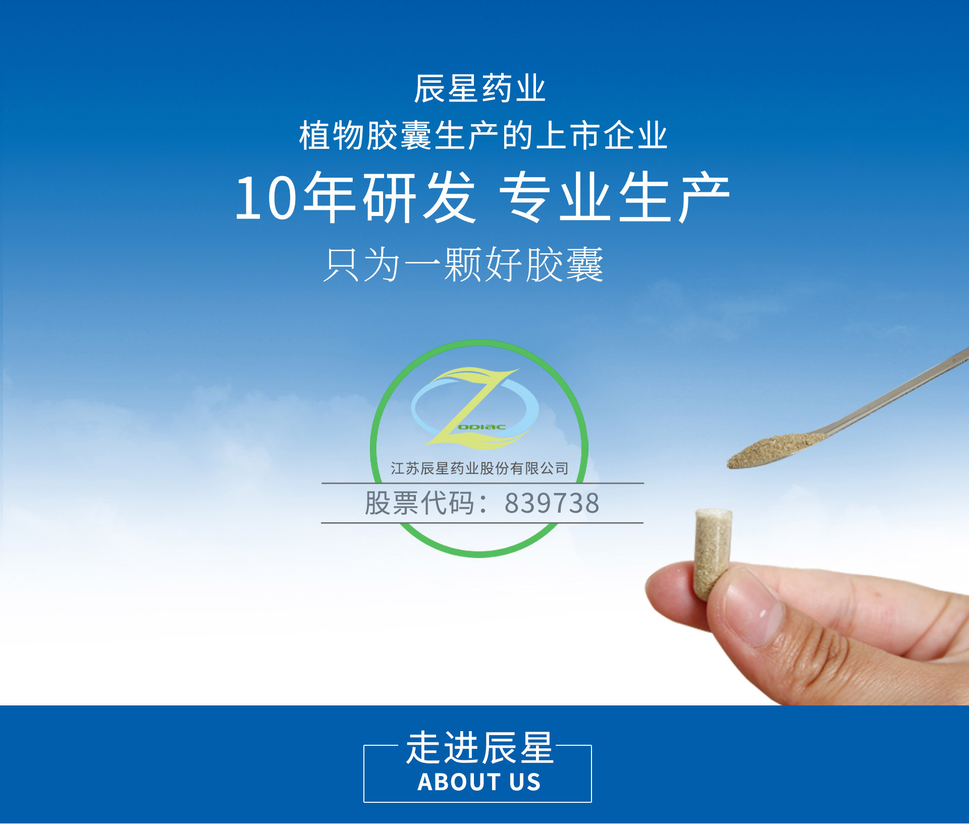 江蘇辰星藥業股份有限公司是一家專注于植物膠囊研發及生產的新三板掛牌企業(股票代碼:839738),位于江蘇省南通市通州區國家高新技術產業開發區,占地54000㎡,總投資2000萬美元,是中國專業植物膠囊生產企業。公司的生產廠房和設備嚴格按GMP標準規范設計和建設,并嚴格遵照GMP進行全流程標準化管理,年產植物空心膠囊40億粒。是擁有自主知識產權的專業生產企業。 公司主要研發植物復合膠,通過先進的工藝手段加工成植物空心膠囊,該研發項目獲得國家發明專利證書。產品可以適應于市場上的各類填充機,各項指標與美國、日本的同類產品不相上下,具有植物空心膠囊的完全自主知識產權。2019年,該產品已完成國家藥監局原輔包平臺登記注冊,登記號為F20170000017,并已通過相關技術審評,現狀態為【A】
