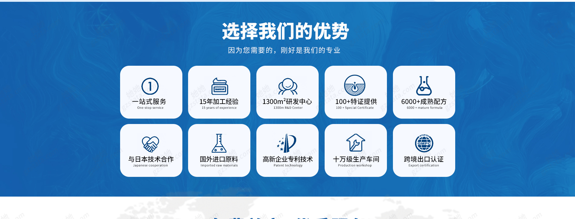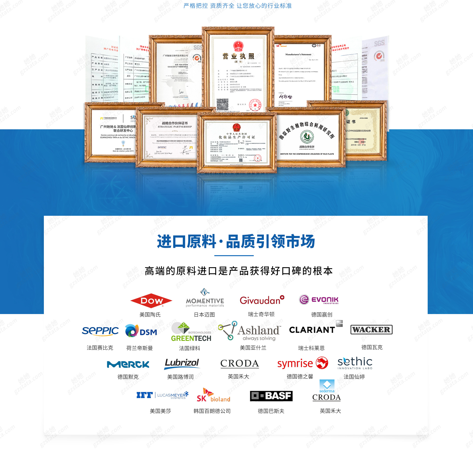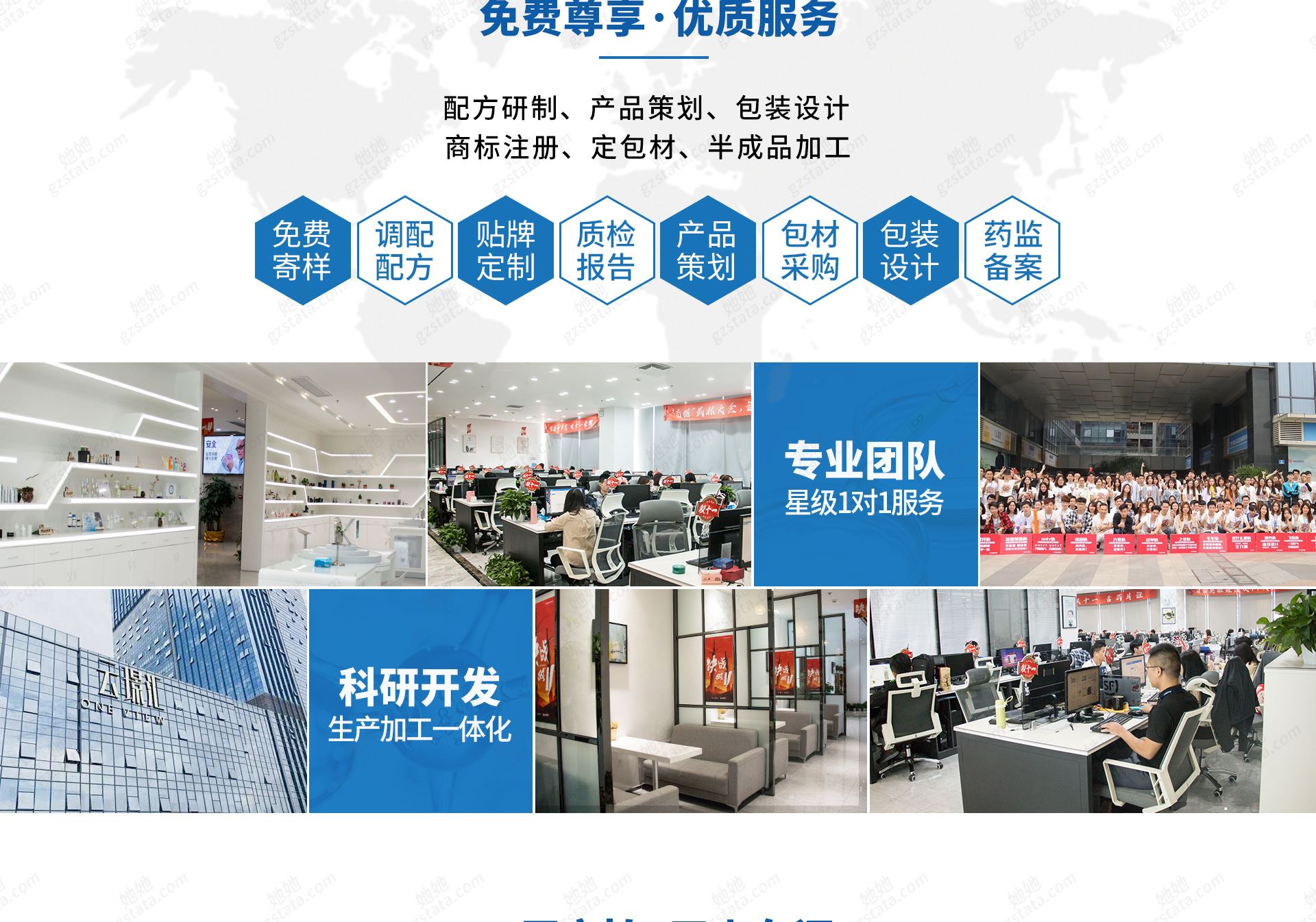 廣州她她生物科技有限公司是一家集德國、日本、意大利等國先進技術于一體,年生產能力達數千噸的大型化妝品生產基地,工廠占地面積8000平方米,全套生產線嚴格按GMP標準設計投產,達到微菌化標準:全面引進享譽全球的德國IKA公司乳化均質機、英國克藍公司密封裝置、德國ABB高速電機和英國原裝噴碼機等當今國際一流的生產設備、全自動物流配送中心、計算器組成的物控管理網絡實現倉儲、生產、配送全方位智控系統。 采用國際最新生產工藝、先進的生產檢測設備和無菌生產車間、完善的質保體系、精挑細選的產品原料、確保了產品的高質量和安全性。公司設有高規格的研發中心和PMC中心,中、高級專業技術人員占員工總數的30%。公司以專業的研發能力為基礎,憑著先進的國際化標準廠房和生產設備,致力于高品質化妝品的研發和制造,為自有品牌以及加工客戶提供適應市場需要的高品質產品。