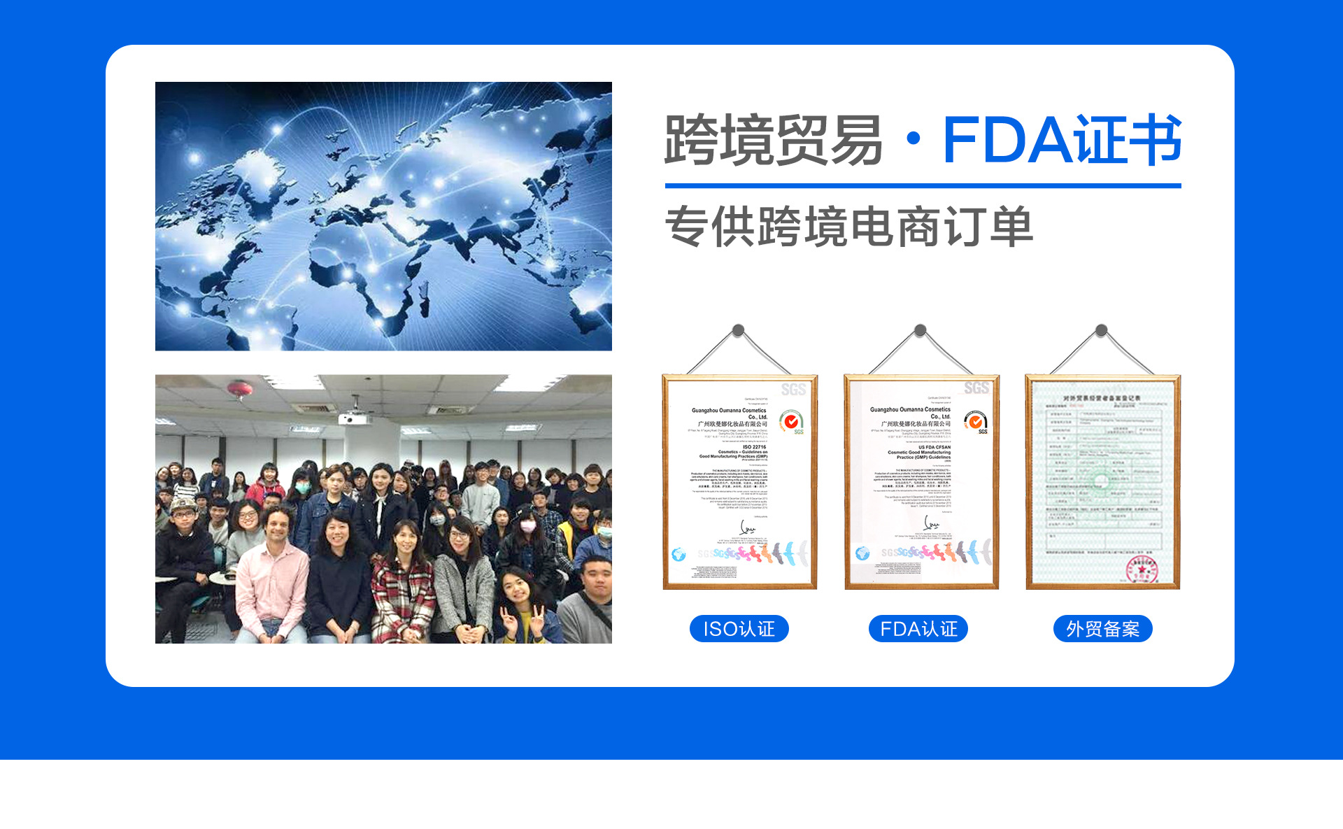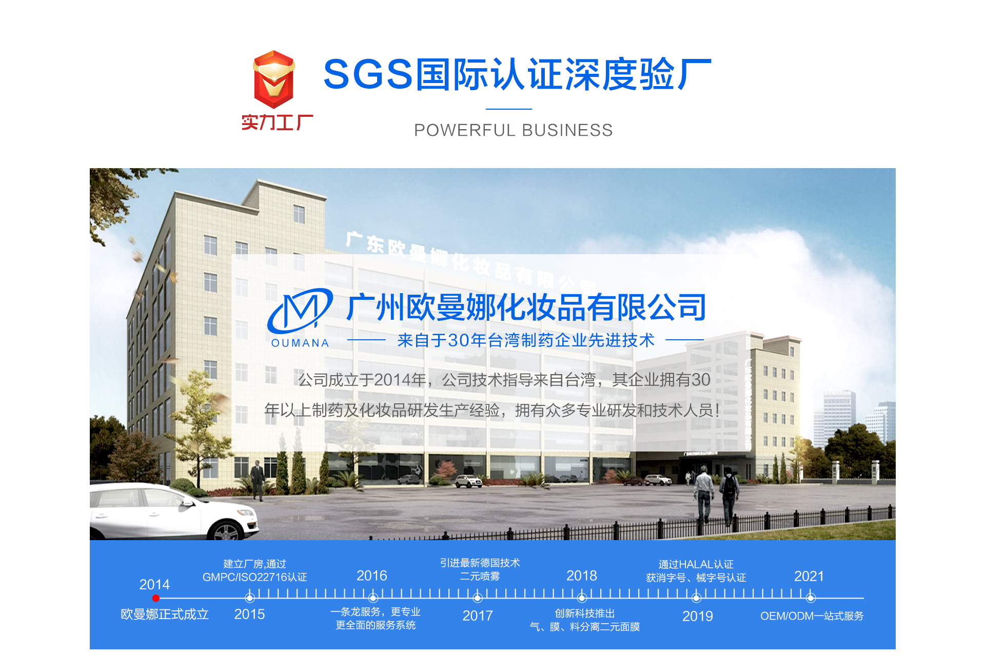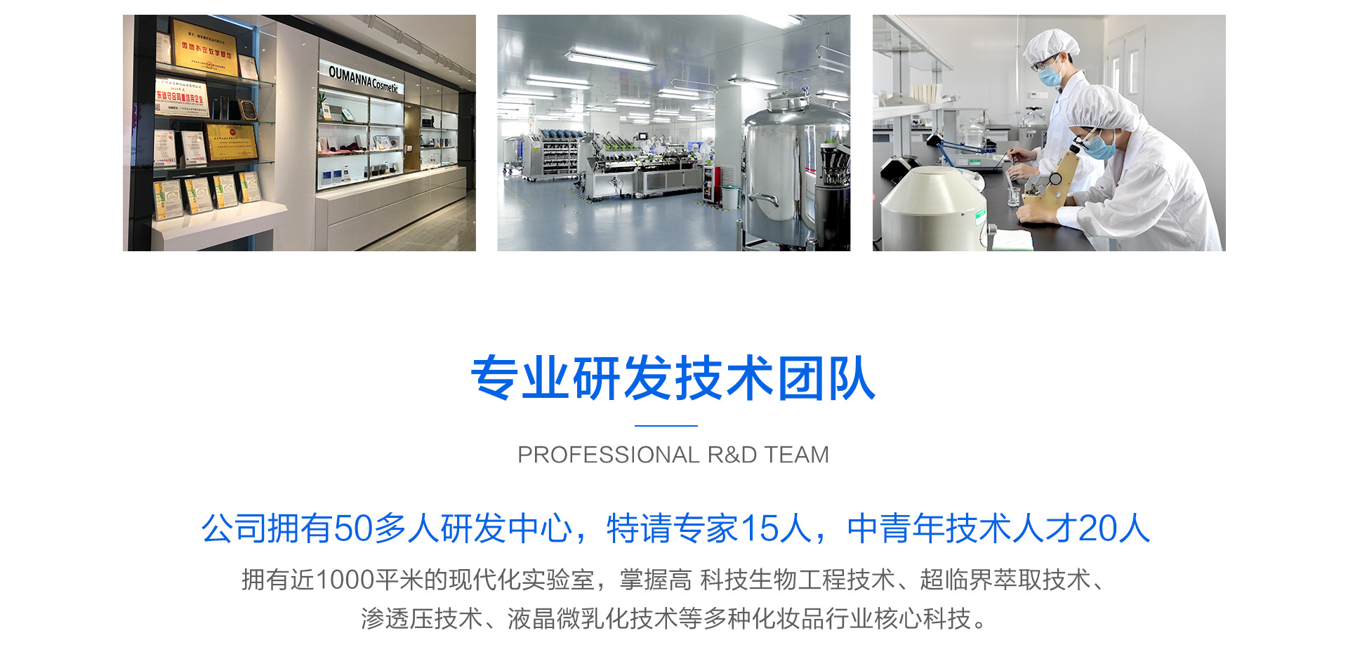 廣州歐曼娜化妝品有限公司是面膜界OEM/ODM赫赫有名的家族企業,同時被評為2015年年度十大誠信企業!占地面積高達10000平方米,并配備了GMP國際標準制藥級的先進生產設備。 公司首席技術指導來自臺灣,其家族企業擁有30年以上制藥及化妝品研發生產經驗,擁有眾多從事生物開發、免疫學、皮膚學、化妝品原料學、配方合成學的專業研發和技術人員! 歐曼娜已建立高效、完善的現代企業管理制度、品質檢驗制度,嚴格執行國際質量管理標準