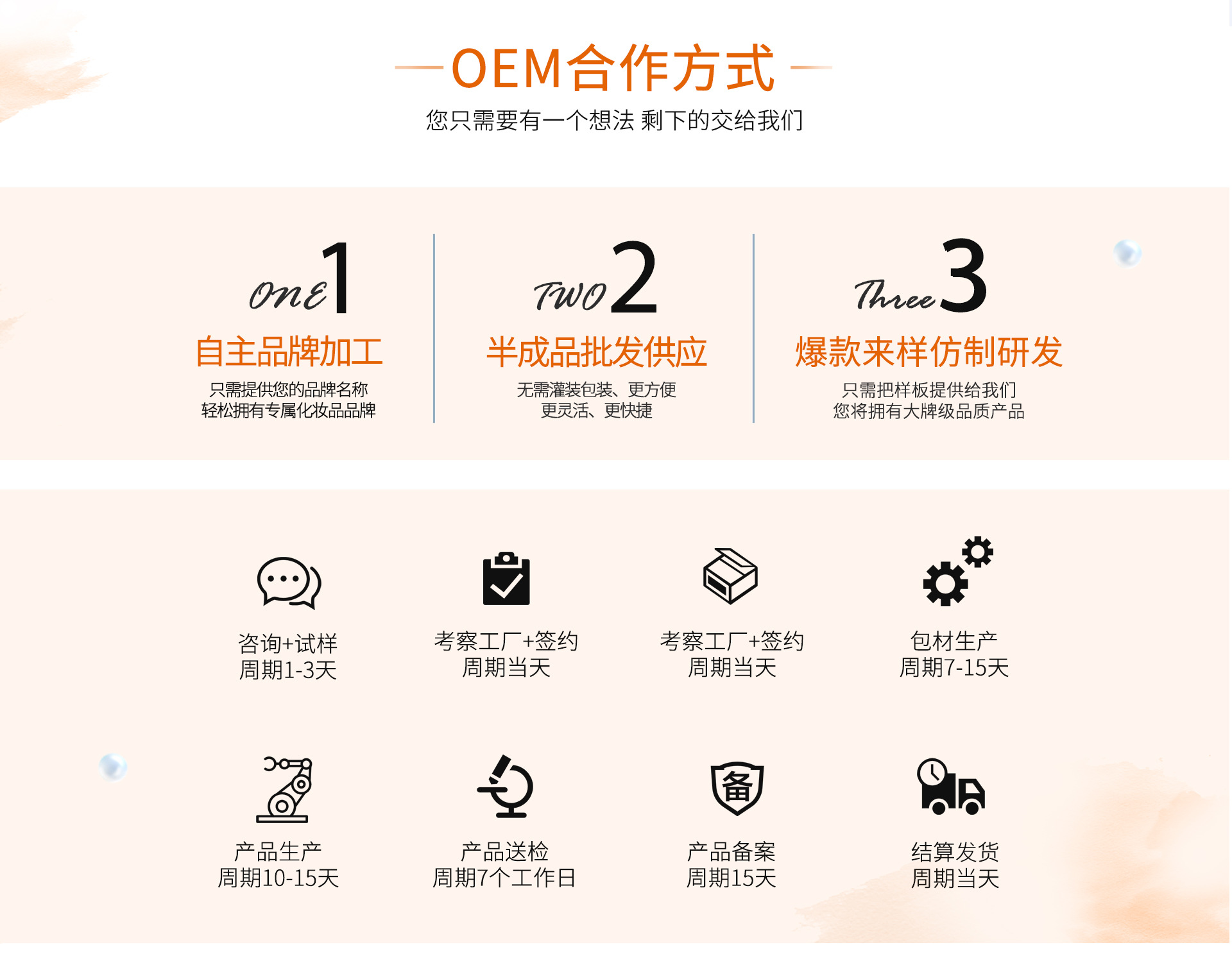 廣州唐美化妝品有限公司成立于2016年,總部位于廣東省廣州市,是一家集研發(fā)、生產(chǎn)、銷售于一體的公司,始終堅持“質(zhì)量至上、誠信為本、互惠互贏”的企業(yè)文化理念,引進(jìn)先進(jìn)的管理體系和尖端的科學(xué)技術(shù),針對國內(nèi)大眾消費群體,研制國內(nèi)一流、性價比高的美妝產(chǎn)品,成功打造出了“佐格”“美啦美”“杰列斯”“冰寵惹肌”“FQD”等等自主品牌。公司占場面積近2萬平方米,擁有辦公樓、住宿樓、生產(chǎn)車間(庫)共4棟廠房,擁有多條自動流水線。公司員工常年保持在300~500人,設(shè)有設(shè)計部、生產(chǎn)計劃部、采購部、銷售部、人事行政部、數(shù)控部、財務(wù)部、保安室等運營職能部門和成品倉、半成品倉、包裝車間、注塑車間等生產(chǎn)職能部門。廣州唐美化妝品有限公司專業(yè)生產(chǎn)加工唇膏、口紅、唇彩、粉底、BB霜、卸妝水等產(chǎn)品,每款產(chǎn)品都經(jīng)過層層審核,化妝品備案,專業(yè)機(jī)構(gòu)檢測報告。公司憑借誠信互贏、實力和產(chǎn)品質(zhì)量獲得業(yè)界認(rèn)可。歡迎各界朋友蒞臨參觀、指導(dǎo)