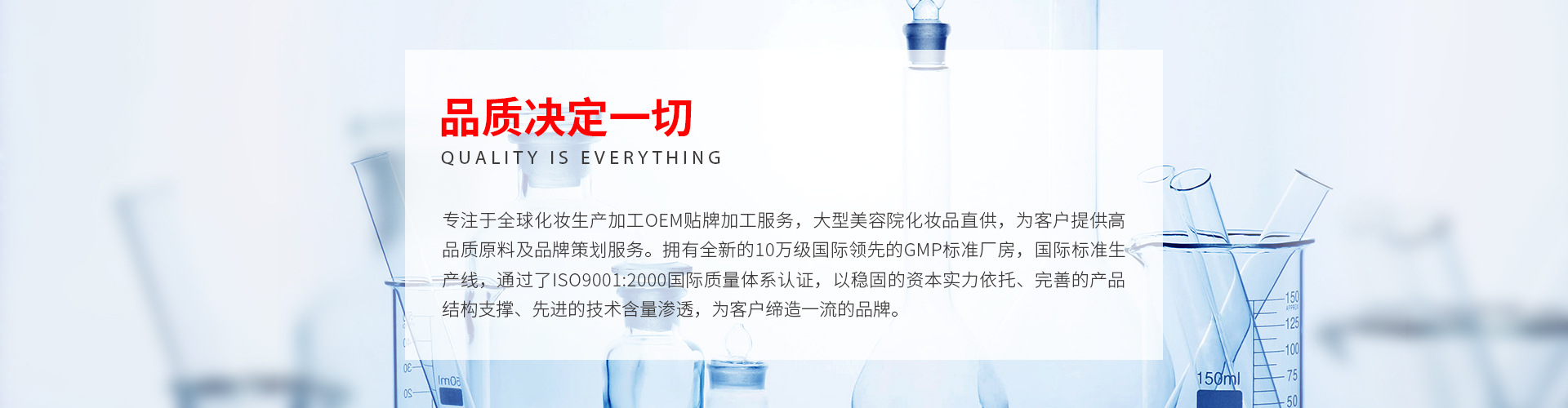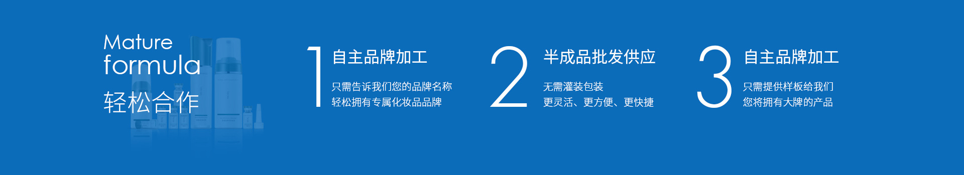 廣州豐瑞文化發展有限公司是一家集產品研發、銷售服務、多元化投資為一體的大型企業。旗下擁有廣州嬌美與廣東萬禧兩家化妝品生產加工工廠。自創立以來,與廣大國內外客戶平臺共享,專注于全球化妝生產加工OEM貼牌加工服務,大型美容院化妝品直供,為客戶提供高品質原料及品牌策劃服務。擁有全新的10萬級國際領先的GMP標準廠房,國際標準生產線,通過了ISO9001:2000國際質量體系認證,以穩固的資本實力依托、完善的產品結構支撐、先進的技術含量滲透,為客戶締造一流的品牌。 公司現與百余家國內外代工客商保持長期密切合作,以誠信與實力,深得國內外廣大客戶的依賴!十余年的行業沉淀,嬌美吸取OEM/ODM服務之精髓,以專業知名品牌的經驗、豐富的產品結構、不斷創新的務實精神,以中國知名專業化妝品代工生產商為目錄。 嬌美的企業經營理念是:幫客戶產品升級,助員工實現夢想。