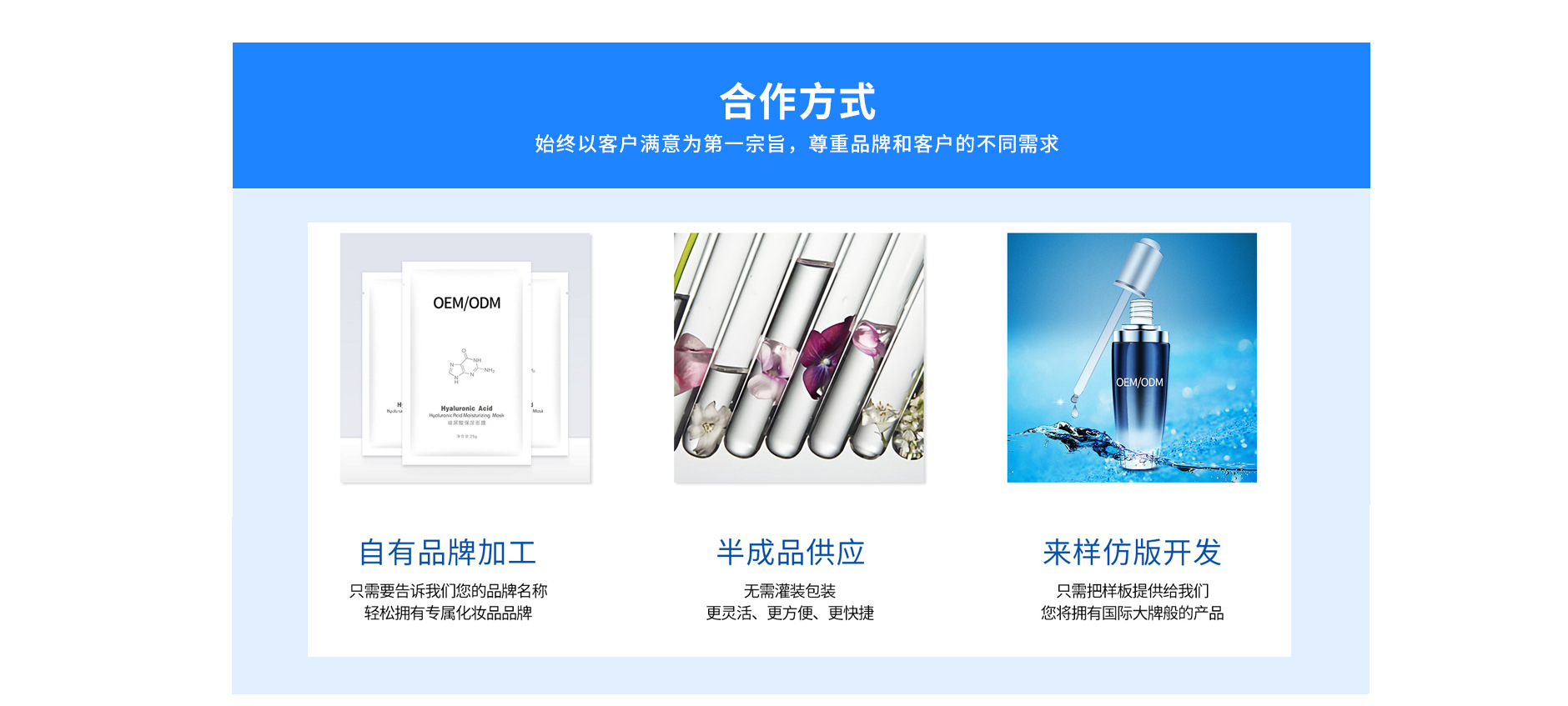 美肌化妝品有限公司是一家集護膚品/彩妝研發(fā)、原料研制、配方開發(fā)、加工生產(chǎn)以及物流配套性服務為一體的全球化妝品服務企業(yè)。專注護膚品貼牌OEM、ODM加工15年、涵括粵妝字號、械字號、消字號、彩妝護膚,現(xiàn)已取得ISO9001,ISO22716,F(xiàn)DA認證和美版GMPC認證等進出口生產(chǎn)貿(mào)易資質(zhì)及十多項國家認證專利技術。