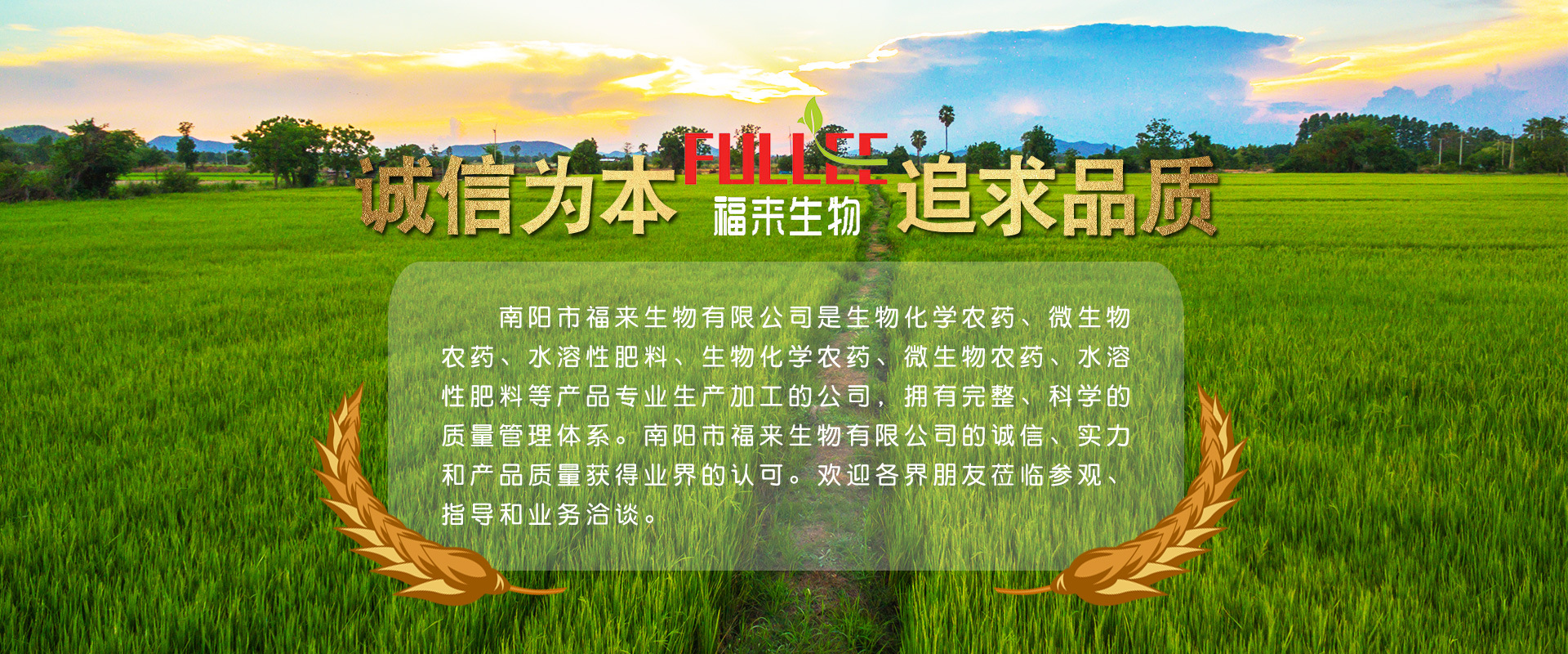 南陽市福來生物有限公司,2015年正式注冊成功,注冊資金2000萬元,是南陽市福來石油化學有限公司的一個直屬全資子公司,是一家農資企業,位于河南省南陽市桐柏工業園區。隨著社會的進步,人民生活水平的不斷提高,食品安全越來越受到社會的關注。國家政府也對從事農資行業的企業提出更高的標準和要求,因此加快改革創新是農資企業的必由之路。 公司的主營產品包括:生物化學農藥、微生物農藥、水溶性肥料。南陽市福來生物有限公司秉承國家“十三五”規劃綱要內容,以從事農資20年的南陽市福來石油化學有限公司為依托,形成集技術研發,產品生產、銷售與專業植保技術服務于一體的產業生態鏈。南陽市福來生物有限公司心懷“福在田地間,豐收年年來”的美好愿景,倡導“科學用藥、綠色環保、健康生活”的植保理念,提供“專業、全面、有效率”的技術服務。公司正由一個“農藥制劑企業”逐漸發展成為“農業產業鏈服務企業”,我們希望與各位朋友共同合作