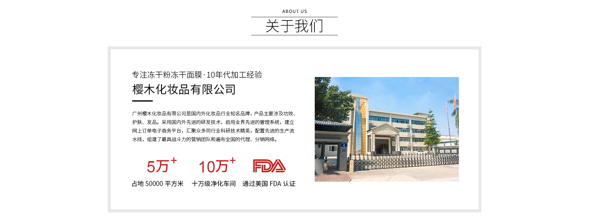 廣州櫻木化妝品有限公司(隸屬RG雷諾生物集團)主營化妝品、護膚品、凍干粉、凍干面膜、微商爆品等OEM,ODM加工業(yè)務,為客戶提供產品策劃、方案設計、產品備案、產品生產及物流一條龍服務。公司秉承“顧客至上,銳意進取”的經營理念,堅持“客戶第一”的原則為廣大客戶提供優(yōu)質的服務。工廠占地面積達50000平方米,全面引進德國EKATO高端乳化設備以及德國IKA先進的實驗室設備,擁有10萬級無塵生產車間和百萬級的罐裝流水線,符合歐盟和美國GMPC標準,備有妝字號、特妝號、消字號等生產特證。集團公司長期與美國、德國、日本、韓國等國家護膚科研機構合作,十余年來以匠心品質助力于優(yōu)理氏等一批優(yōu)秀品牌發(fā)展