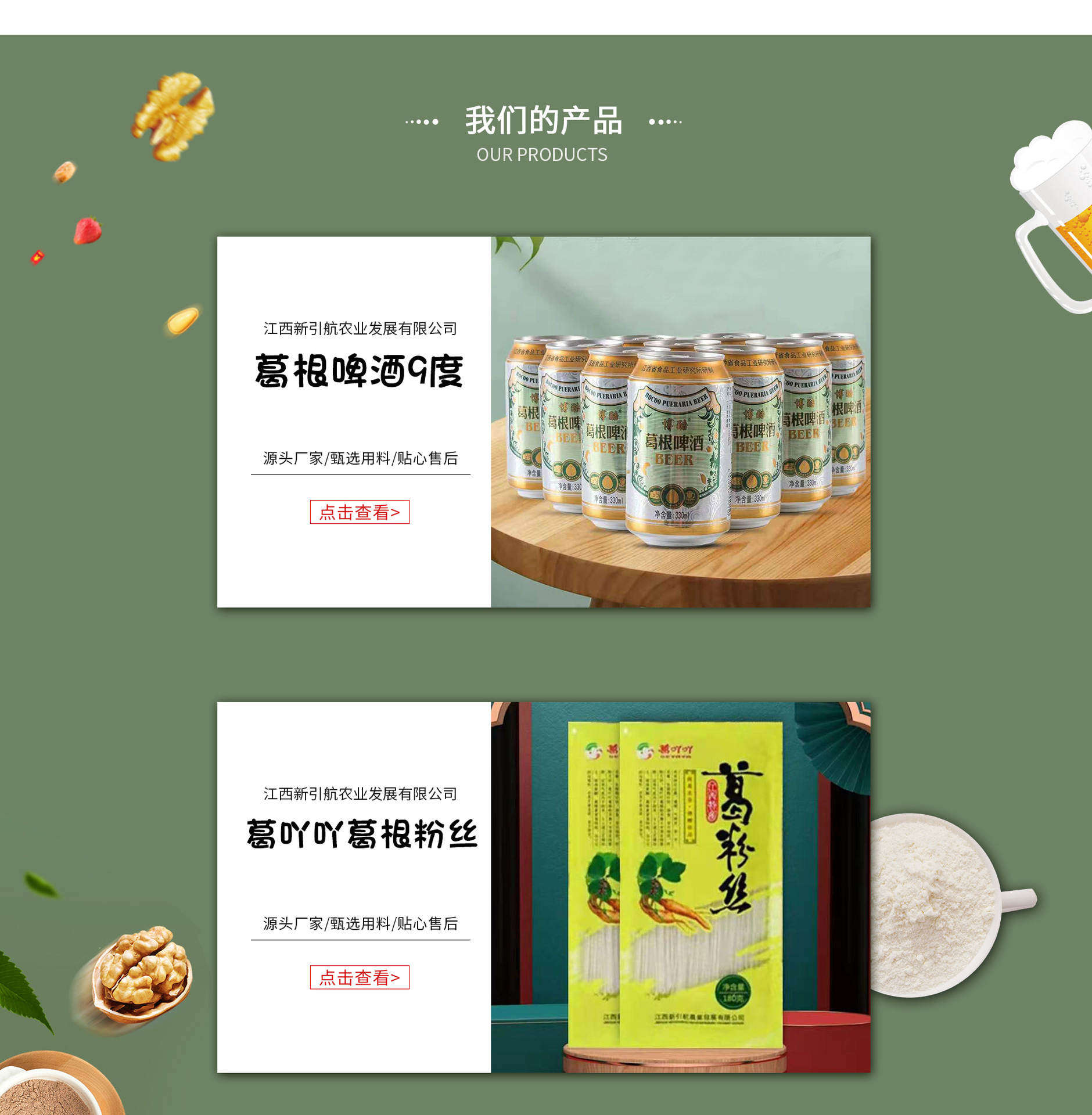 江西新引航農業發展有限公司是葛根粉、葛根粉絲、葛根茶、葛根啤酒等產品專業生產加工的公司,擁有完整、科學的質量管理體系。江西新引航農業發展有限公司的誠信、實力和產品質量獲得業界的認可。歡迎各界朋友蒞臨參觀、指導和業務洽談。