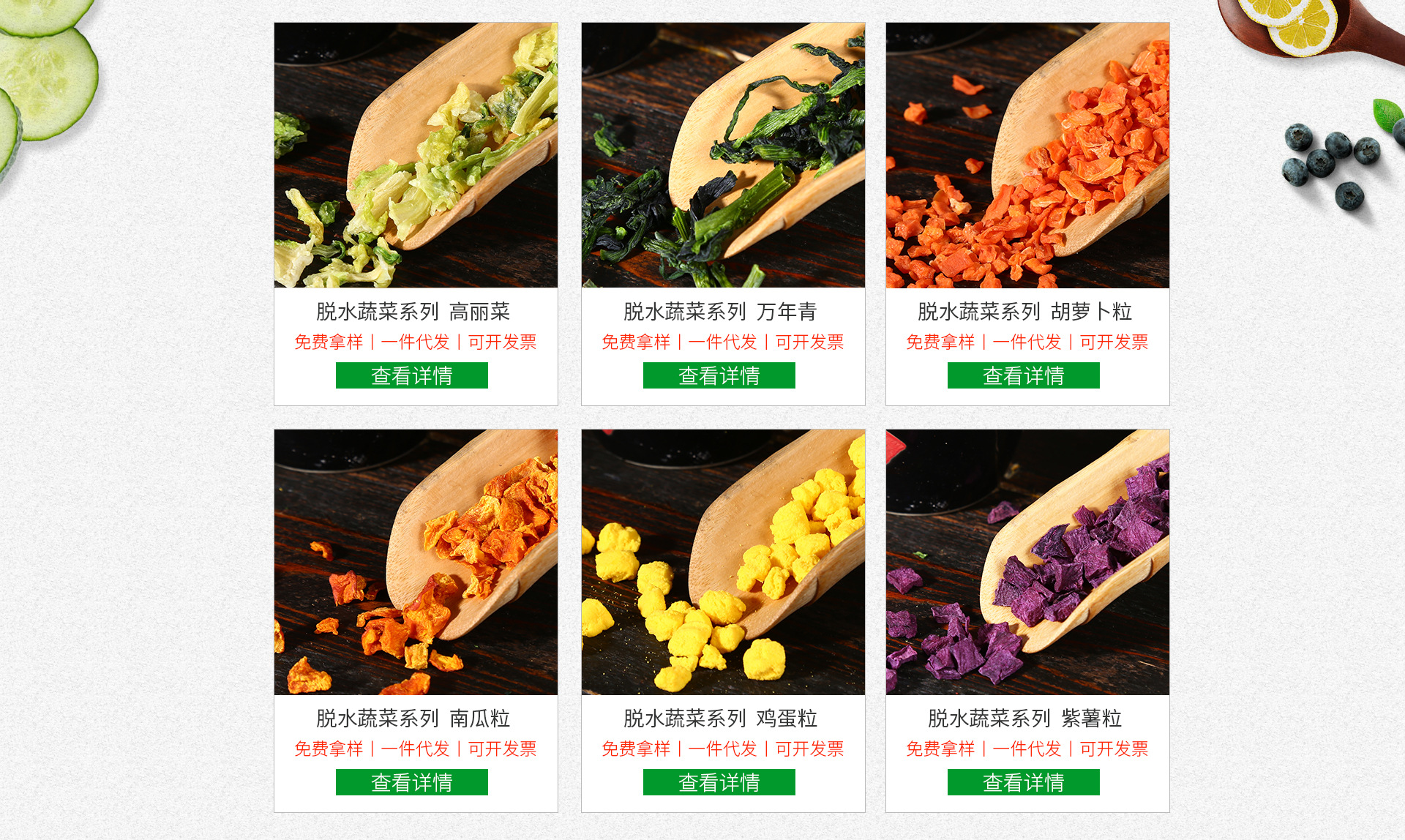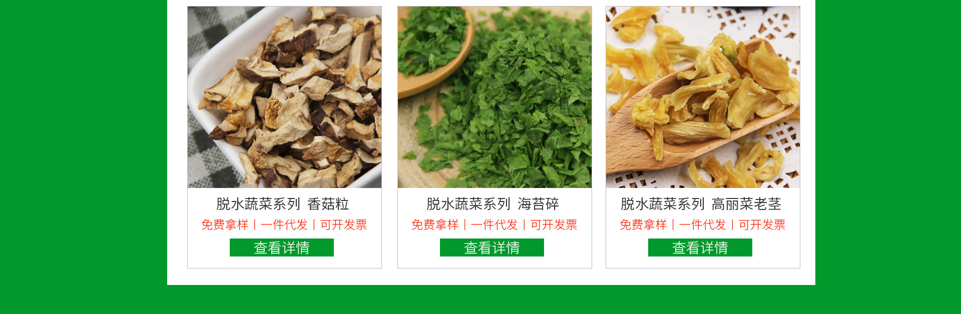 興化市嘉禾食品有限公司是脫水菠菜粉、草莓粒、蘋果粒、雞蛋粒、紫薯粒、香蔥、胡蘿卜粉、大蒜粉、脫水洋蔥、海苔等產品主要生產加工的公司,有完整、科學的質量管理體系。興化市嘉禾食品有限公司的誠信、實力和產品質量獲得業界的青睞。歡迎各界朋友蒞臨參觀、指導和業務洽談。