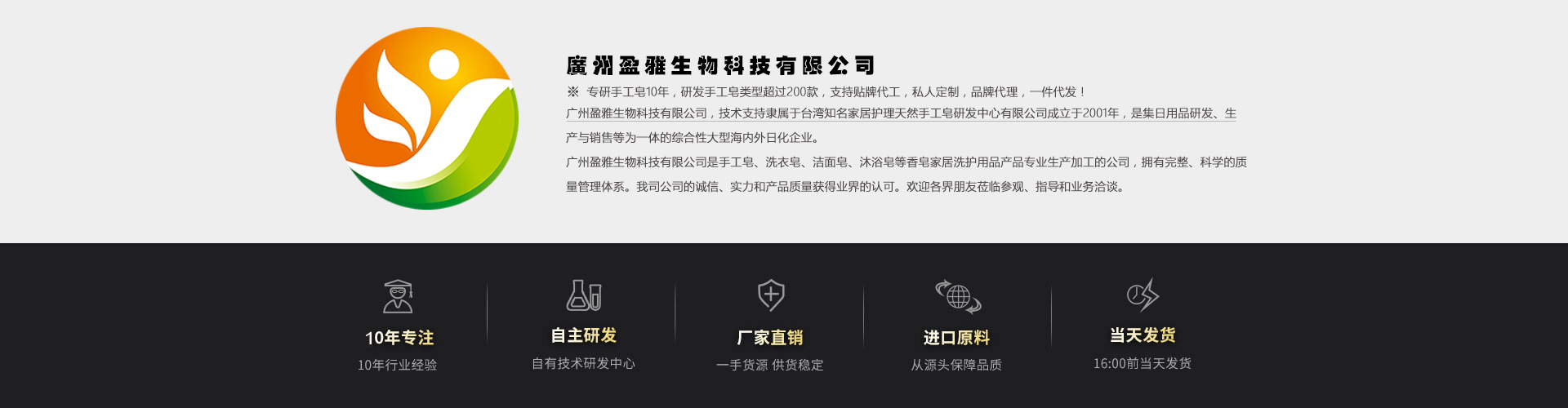 廣州盈雅生物科技有限公司擁有先進的生產設備和專業的研發隊伍,具有多種穩定成熟的配方,主營手工皂系列的品牌和貼牌產品,能為國內外客戶提供專業的產品定制服務,為各大電商平臺,自媒體,品牌商提供質優價優的產品和服務。 我們的產品、由精心配制,產品工藝和質量品質保障,盈雅成立至今始終堅持:“誠信、開拓、創新、共贏”的生產經營理念,以“質量為本、誠信經營、共同成長、共創輝煌”為合作基礎,歡迎國內外客商前來洽談業務,一起共創美好事業!