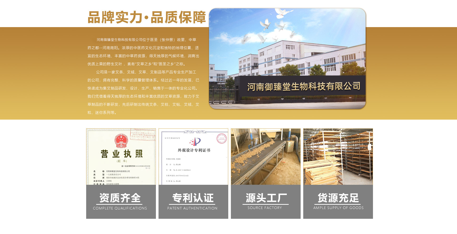 河南御臻堂生物科技有限公司是艾臍貼、艾草頸椎貼、膝蓋貼、艾草保健貼劑、艾條、艾柱、艾灸器具、艾絨等產(chǎn)品專業(yè)生產(chǎn)加工的公司,擁有完整、科學的質(zhì)量管理體系。南陽豐茸艾草科技有限公司的誠信、實力和產(chǎn)品質(zhì)量獲得業(yè)界的認可。歡迎各界朋友蒞臨參觀、指導和業(yè)務(wù)洽談