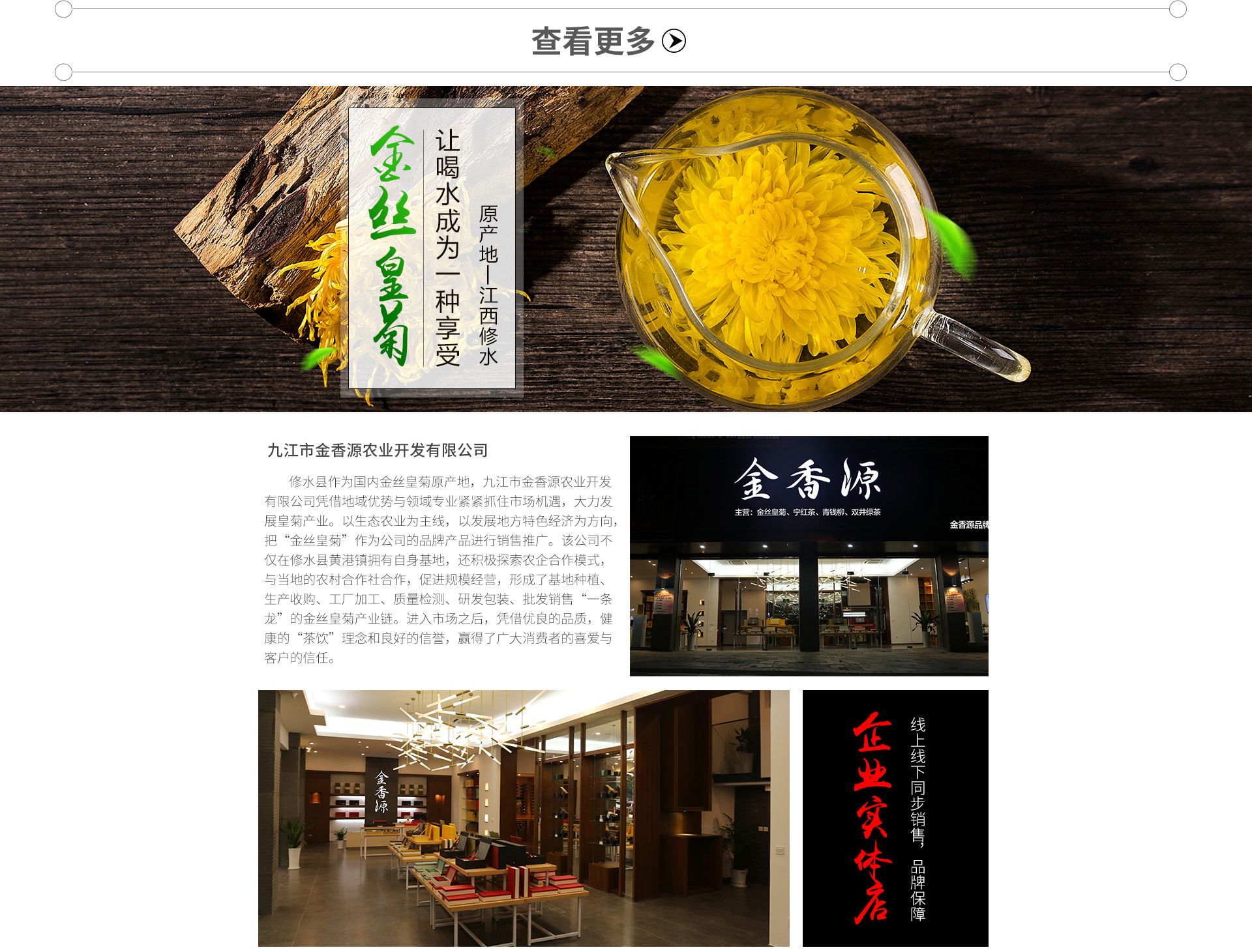 九江市金香源農業開發有限公司成立于2015年,坐落在美麗的江西省九江市修水縣,為修水菊花協會會員單位。憑借原產地優勢,專業從事修水金絲皇菊的種植、生產和銷售。目前,已建成現代化代用茶車間1500平米,菊花種植基地100畝。除自身基地外,公司還積極探索農企合作模式,促進規模經營,形成了基地種植、生產收購、工廠加工、質量檢測、研發包裝、批發銷售“一條龍”的菊花產業鏈。金香源崇尚“綠色,天然,健康”的企業信念,建立了完整、科學的質量管理體系,始終為顧客提供優質的產品、良好的技術支持、健全的售后服務。進入市場后,憑借優良的品質,健康的“茶飲”理念和良好的信譽,贏得了廣大消費者的喜愛與信任。在全體員工的共同努力下,公司得到穩步發展。我們將不忘初心,繼續努力,樹立好口碑,擴大影響力,帶動更多人就業增收,把修水金絲皇菊產業做成大產業,做成全國知名品牌,讓菊花成為鄉親們的‘致富花’