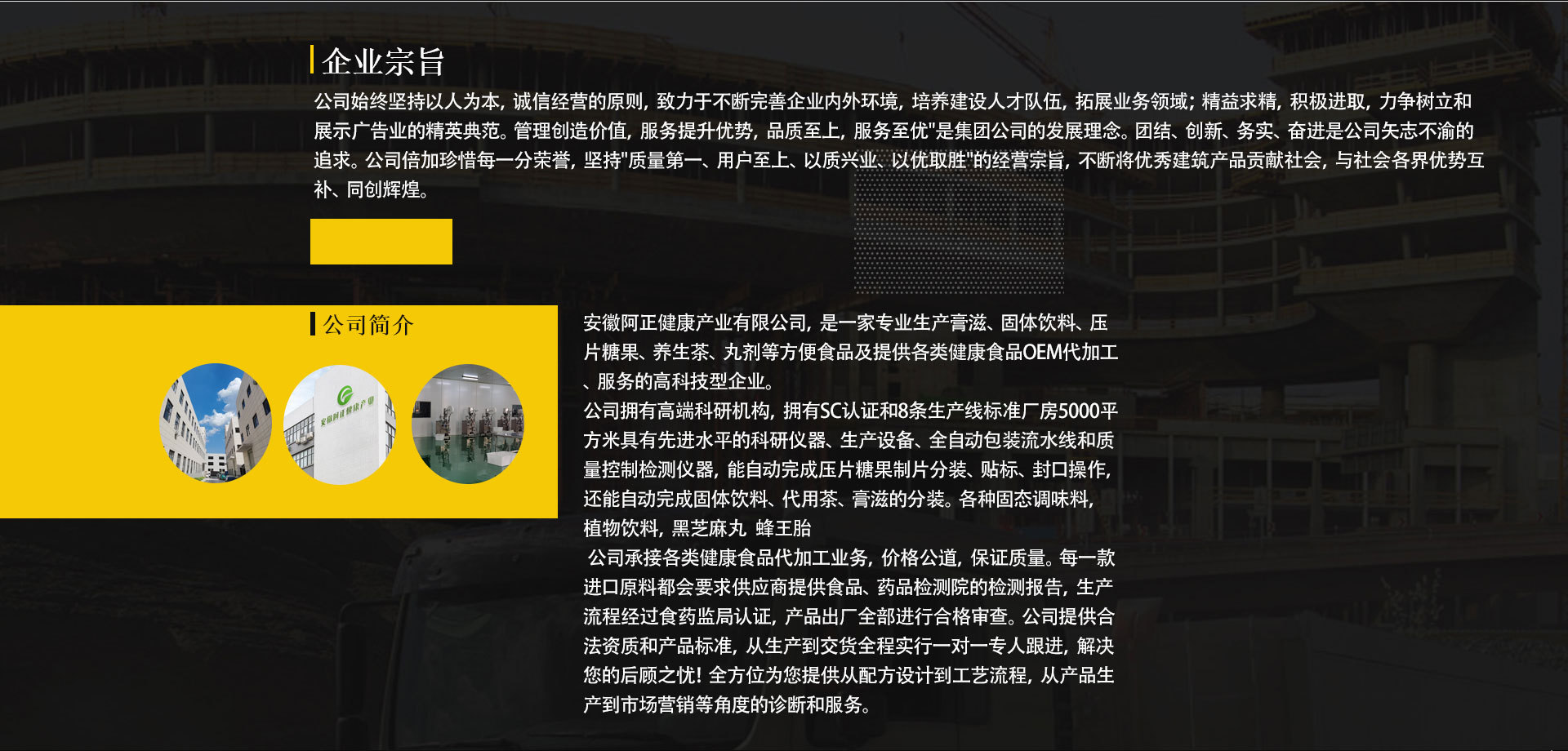安徽阿正健康產(chǎn)業(yè)有限公司,是一家專(zhuān)業(yè)生產(chǎn)膏滋、固體飲料、壓片糖果、養(yǎng)生茶、丸劑等方便食品及提供各類(lèi)健康食品OEM代加工、服務(wù)的高科技型企業(yè)。 公司擁有高端科研機(jī)構(gòu),擁有SC認(rèn)證和8條生產(chǎn)線(xiàn)標(biāo)準(zhǔn)廠(chǎng)房5000平方米具有先進(jìn)水平的科研儀器、生產(chǎn)設(shè)備、全自動(dòng)包裝流水線(xiàn)和質(zhì)量控制檢測(cè)儀器,能自動(dòng)完成壓片糖果制片分裝、貼標(biāo)、封口操作,還能自動(dòng)完成固體飲料、代用茶、膏滋的分裝。 公司承接各類(lèi)健康食品代加工業(yè)務(wù),價(jià)格公道,保證質(zhì)量。每一款進(jìn)口原料都會(huì)要求供應(yīng)商提供食品、藥品檢測(cè)院的檢測(cè)報(bào)告,生產(chǎn)流程經(jīng)過(guò)食藥監(jiān)局認(rèn)證,產(chǎn)品出廠(chǎng)全部進(jìn)行合格審查。公司提供合法資質(zhì)和產(chǎn)品標(biāo)準(zhǔn),從生產(chǎn)到交貨全程實(shí)行一對(duì)一專(zhuān)人跟進(jìn),解決您的后顧之憂(yōu)!全方位為您提供從配方設(shè)計(jì)到工藝流程,從產(chǎn)品生產(chǎn)到市場(chǎng)營(yíng)銷(xiāo)等角度的診斷和服務(wù)。