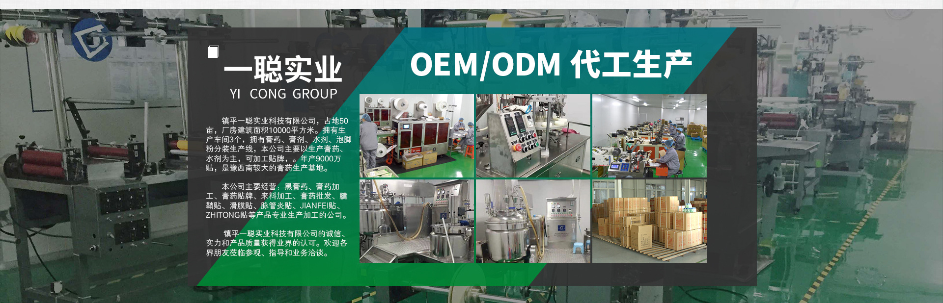 鎮平一聰實業科技有限公司,公司坐落于鎮平工業園區,占地50畝,公司廠房建筑面積10000平方米。擁有生產車間3個,擁有膏藥、膏劑、水劑、泡腳粉分裝生產線,主要生產膏藥、水劑等各種劑型的保健產品,本公司主要以生產膏藥、水劑為主。加工貼牌,生產各種黑膏藥、巴布貼及各種膏藥。年產9000萬貼,是豫西南較大的膏藥生產基地。本公司擁有自主研發的知名產品。 本公司主要經營:黑膏藥、膏藥加工、膏藥貼牌、來料加工、膏藥批發、腱鞘貼、滑膜貼、脈管炎貼、jianfei貼、zhitong貼等產品專業生產加工的公司,擁有完整、科學的質量管理體系。鎮平一聰實業科技有限公司的誠信、實力和產品質量獲得業界的認可。歡迎各界朋友蒞臨參觀、指導和業務洽談。