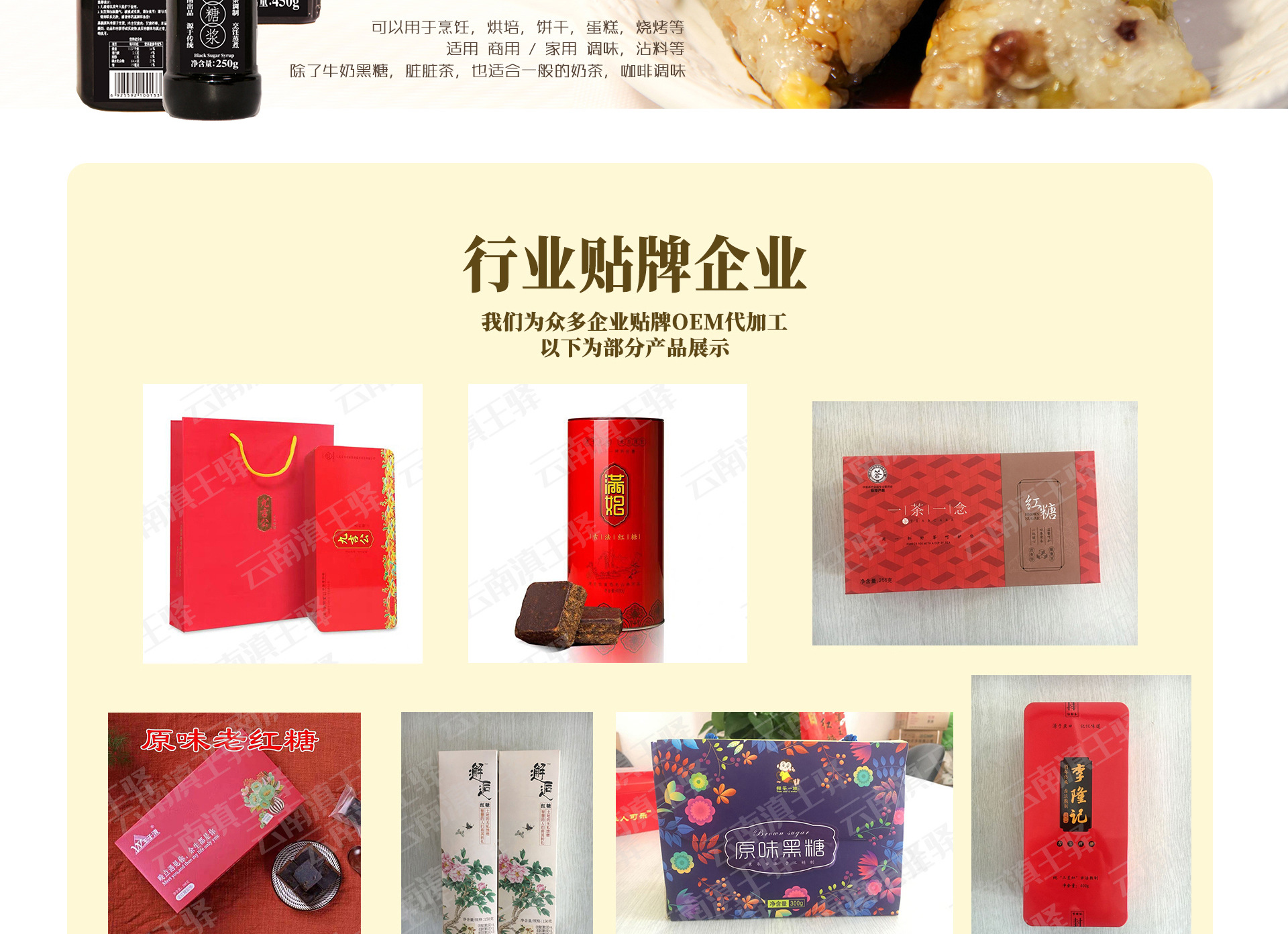 云南滇王驛農業科技開發有限公司2000年成立。企業是“云南省農業產業化重點龍頭企業”、“云南省農產品深加工科技型企業” 、“楚雄州規模以上企業”及“云南省科技型中小企業”,“國家級高新技術企業”被列為“中國農業部農產品加工業景氣監測固定觀察點”、企業商標“滇王驛”是“云南省著名商標,是楚雄州萬企幫萬村扶貧明星企業。多年耕耘,企業通過了HACCP、ISO9000、ISO22000食品質量安全管理體系認證,已獲專利證書26項,報批審核的發明專利2項,生產資質6項。 公司糖制品業務產值達到3千多噸,“滇王驛紅糖、黑糖”,“樹立了云南高原紅糖在國內消費者心中的地位,奠定了全國消費者對“云南高原紅糖、黑糖”的價值感及認同感. 公司除生產自有品牌“滇王驛”外,還為國內眾多企業做OEM貼牌代工。 歡迎代理批發、貼牌代工 OEM 。