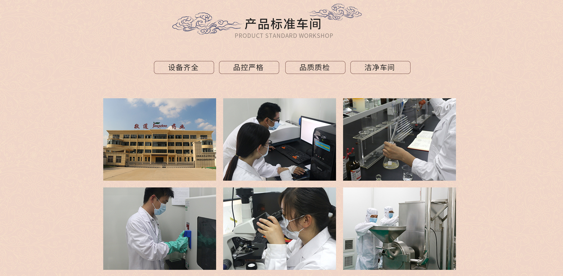 安徽敬道生物科技有限公司是一家2017年通過GMP認證的中藥飲片生產加、中藥提取及花草茶、消毒產品的生產企業,公司位于亳州市高新區養生大道1577號,地理位置優越。廠區內設有生產車間10000余平方、倉庫6000平方、辦公質檢樓4000平方、道地藥材種植基地500余畝。公司現有職工100余人,中藥學相關專業技術人員占總員工數的40%。 公司主要產品包普通中藥飲片、毒性中藥飲片、精制中藥飲片、口服飲片、國家管制類中藥飲片、養生花茶、草本抑菌膏、中藥材等。其中,普通中藥飲片600余種,毒性中藥飲片20余種,精制中藥飲片50余種,口服飲片10余種。