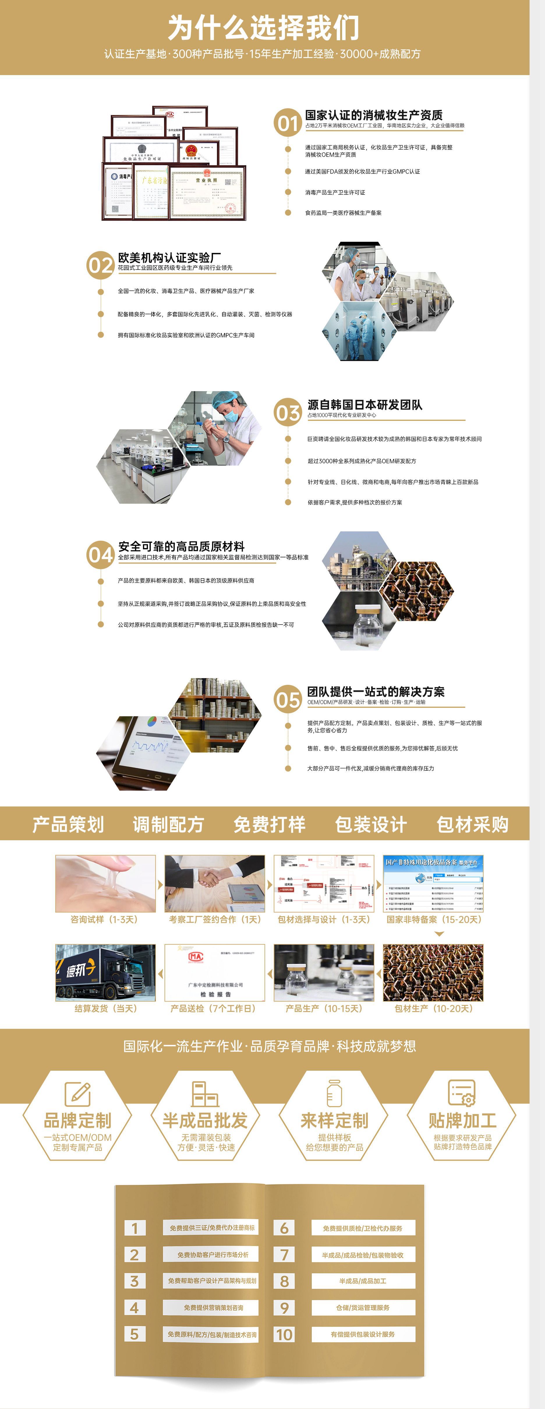 廣州澤美生物科技有限公司是一家集研發(fā)、生產(chǎn)、銷售于一體的綜合型生產(chǎn)企業(yè),專業(yè)OEM貼牌生產(chǎn)提供三證,產(chǎn)品備案,具有深厚的行業(yè)背景和良好的企業(yè)文化。承接:妝字號、消字號、械字號。原料優(yōu)勢:原料均經(jīng)過多重嚴(yán)苛精打細(xì)算,擁有全球各地區(qū)長期穩(wěn)定的優(yōu)質(zhì)原料供應(yīng)商技術(shù)優(yōu)勢:按照十萬級別GMP生產(chǎn)標(biāo)準(zhǔn)建造,引進多條先進的生產(chǎn)線,3萬多平方米的生產(chǎn)基地,近1000平方米的辦公區(qū)域高標(biāo)準(zhǔn)的化妝品與研究室.是廣東理想的化妝品生產(chǎn)基地.