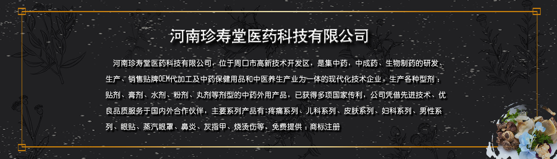 珍壽堂醫藥科技有限公司擁有獨立的研發中心、營銷中心和培訓中心。主要致力于純中藥外用產品的研發和創新,公司旗下擁有“珍壽堂”系列產品和“珍壽堂”健康中心萬店聯盟項目,產品因效果顯著而深受百姓愛戴!公司秉承“仁為心”“信為準”的理念,以“弘揚國粹、仁心濟事“為使命,專業專注中藥外用綠色療法,堅持“內外兼修、扶正固本”的傳統中醫理論造福于民。