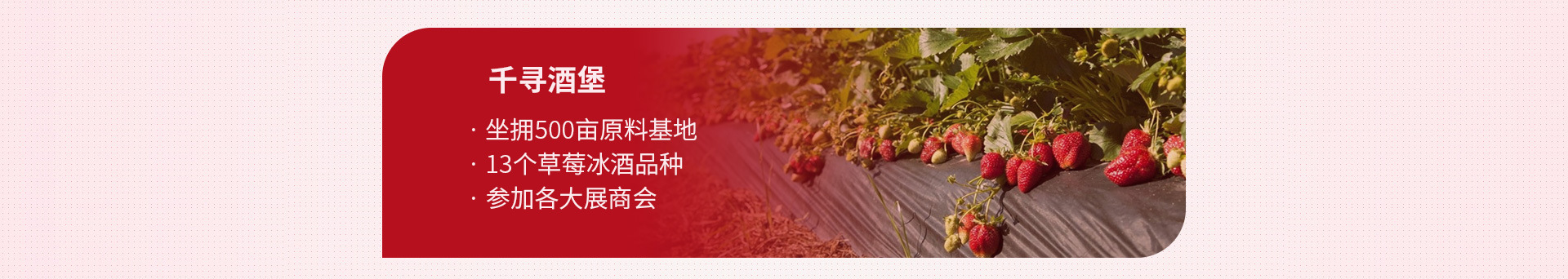 千尋草莓莊園 草莓冰酒、世界獨創、白領專享、健康養生新概念! 1、莊園簡介:草莓莊園坐落在素有花果之鄉的昌黎,北依碣石,東臨渤海,西帶灤河,是世界著名的紅酒之鄉。由于獨特的山地海洋氣候,昌黎有近30年的草莓種植傳統,其草莓暢銷廣東、廣西、內蒙古、上海、北京、天津等省市及俄羅斯市場。草莓莊園多年來致力于基地的培養和產品的研制開發,現在擁有5000畝原料基地和13個草莓冰酒品種,其產品一經投入市場即廣受消費者青睞。草莓莊園將固守傳統工藝,拒絕現代化生產的理念,為消費者奉獻出世界獨一無二的草莓冰酒! 2、產品特點:冰酒有著悠久的歷史,它的釀造起源于200多年前歐洲,經進一步改良,開始流傳至今。一般來說,冰酒是由葡萄為原料釀造而成。草莓冰酒則在世界尚屬第一款。它采用獨特工藝全汁釀制而成,香氣迷人,口感滑潤、甜美醇厚清爽,帶有草莓的獨特香味。