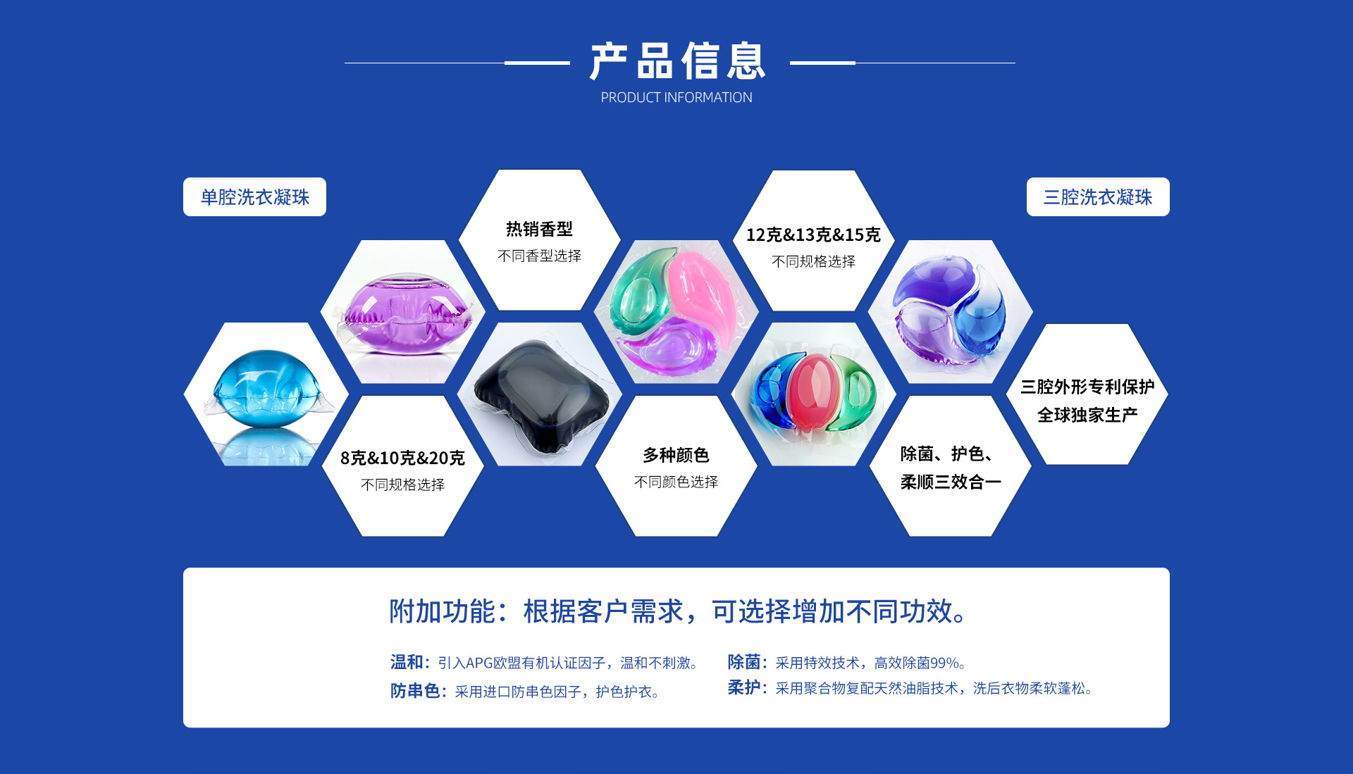 廣東優凱科技有限公司從事洗衣凝珠的研發、生產已有十年的時間,我們有各種成熟的配方供ODM/OEM的客戶進行選擇。我們強大的專業研發團隊也能根據客戶的要求開發相應的配方,我們擁有來自德國的全自動化的生產設備,完全能夠滿足客戶對高品質的要求。此外,我們擁有完善的品質控制體系,不只確保產品品質出廠時的穩定,還確保產品出廠后的穩定--不破裂、不變色、不變形、易漂洗。