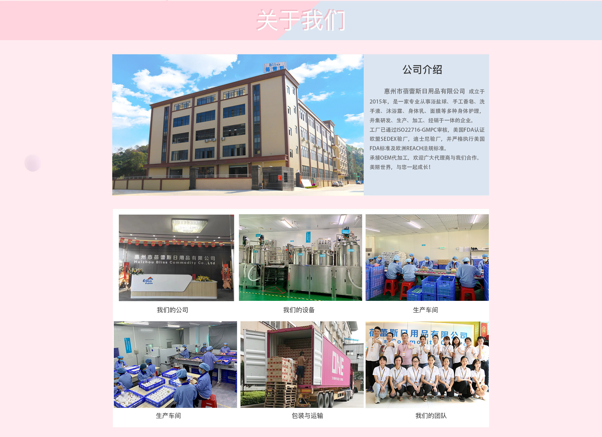 惠州市蓓蕾斯日用品有限公司是香港貝蕾斯實(shí)業(yè)有限公司旗下全資子公司,主要負(fù)責(zé)生產(chǎn)-銷售沐浴鹽、香皂、沐浴用品、身體護(hù)理用品等衛(wèi)浴禮品套裝。公司位于美麗的珠三角城市-惠州,主要市場(chǎng)為歐美,東南亞等各個(gè)地區(qū),承接OEM代加工。本公司擁有優(yōu)質(zhì)的產(chǎn)品質(zhì)量,工廠已通過TSO22716-GMPC審核,美國FDA認(rèn)證,歐盟SEDEX驗(yàn)廠,迪士尼驗(yàn)廠,并嚴(yán)格執(zhí)行美國FDA標(biāo)準(zhǔn)及歐洲REACH法規(guī)標(biāo)準(zhǔn)。廣闊的市場(chǎng)前景,優(yōu)勢(shì)的產(chǎn)品價(jià)格,熱枕歡迎國內(nèi)外客戶前來實(shí)地參觀和考察,通過緊密合作,實(shí)現(xiàn)全面共贏。