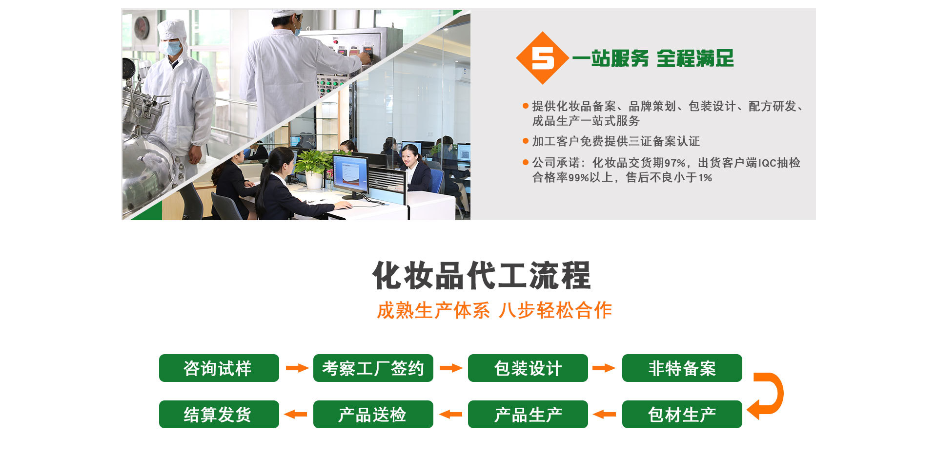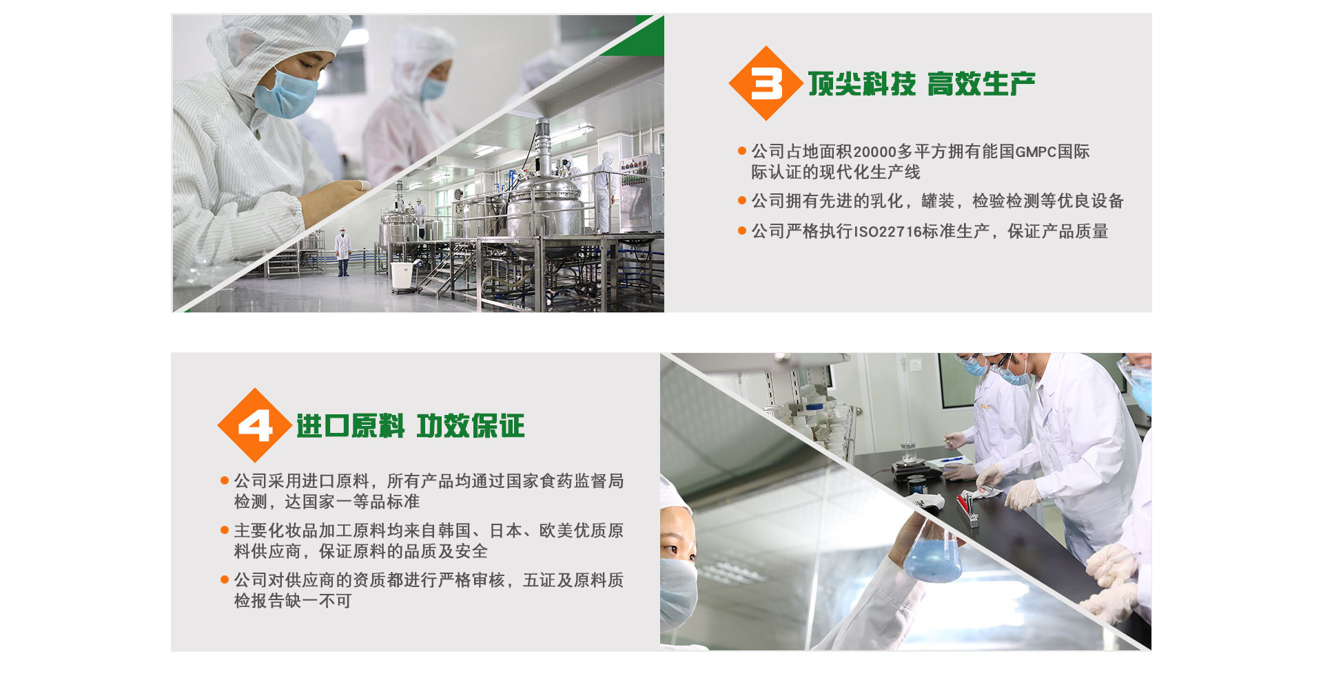 廣州姿嫚秀化妝品有限公司是一家上等產品專業生產加工的公司,有著數十年的發展歷史,配方成熟,產品穩定。集結了一批經驗豐富.技術精湛的化妝品精英(均為本行業先驅)。廠址位于廣州市白云區嘉禾望崗德匯科技園,空氣清新,環境優雅,具備化妝品生產的良好條件,廠區占地5000平方米,科學設計,規劃合理,設備先進,擁有真空乳化鍋,氣動灌裝機,自動化流水線,噴碼機等完善生產設備,并配備有相應的實驗室.化驗室.微檢室等。擁有完整.科學的質量管理體系。本公司憑著多年化妝品研究開發實踐經驗,使產品的質量能夠得到保證,深得客戶的信任和好評。公司化妝品項目已向高科技品質.多元化方面發展,并致力成為中國最專業最權威的化妝品企業。廣州姿嫚秀化妝品有限公司本著誠信、實力和產品質量獲得業界的認可。歡迎各界朋友蒞臨參觀、指導和業務洽談。