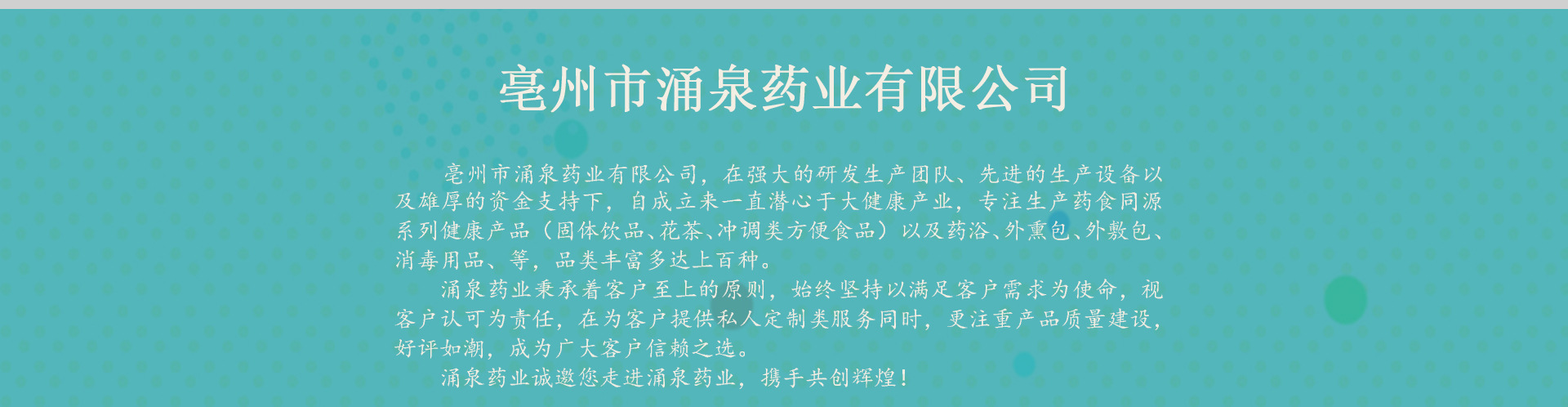 涌泉藥業隸屬于涌泉集團,是產后恢復行業生態服務商,產品銷往全國各地,廣受市場好評,涌泉藥業主營業務有:代用茶、花茶、固體飲料、代餐粉、消毒用品、食品等產品的貼牌、代加工、品牌設計與策劃等服務,