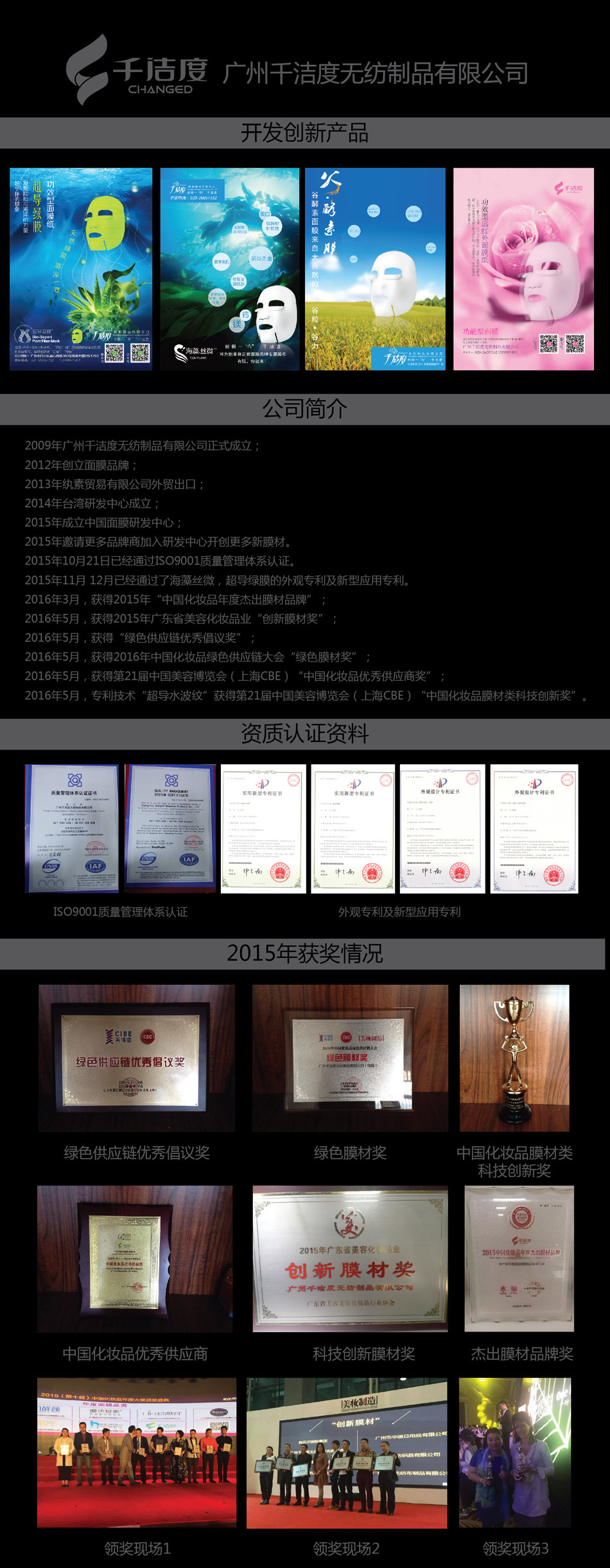 廣州千潔度無紡制品有限公司做為專業的面膜紙的供應商,一直以來,始終致力于面膜紙產品的生產和營銷,為眾多的化妝品廠和生活用品企業提供OEM貼牌加工服務,根據要求進行各種款式和特殊功效產品的研發,多年來,已為100余個品牌提供了服務. 本公司生產的面膜紙是運用目前是采用純天然植物纖維研制而成;絕無添加任何化學物質,產品主要功能是加工面膜,且形態各具,吸附性、鎖水性等達到80%,手感細膩柔軟,表面光潔,包裝纖巧時尚;主要用于面部護膚和化妝等日常生活方面,還可用于擦拭各種相機鏡頭和精密儀器鏡面及眼鏡鏡面等。 展望未來,千潔度無紡制品將繼續以專業的品質和服務為依托,不斷進行技術革新和產品研發,與潮流趨勢同步,以更高的品質滿足客戶多層次的需求。 千潔度,期待與您,真誠合作。