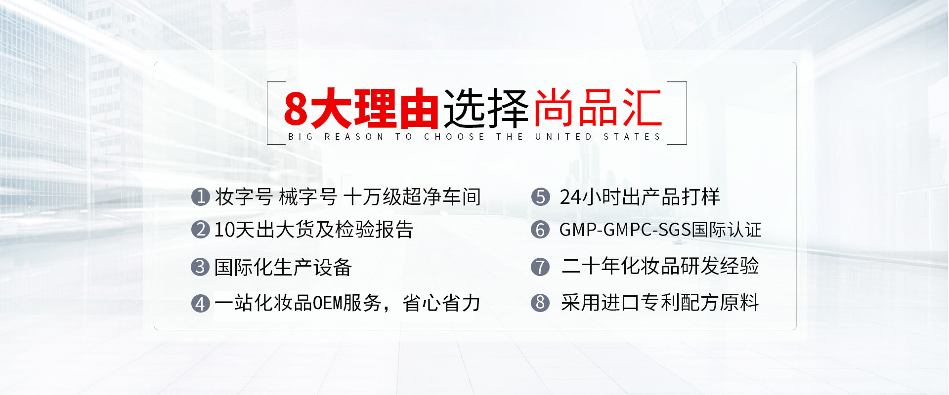 廣東尚品匯生物科技有限公司是一個(gè)全品類化妝品OEM加工企業(yè),具有護(hù)膚、彩妝、洗護(hù)等多個(gè)單元的生產(chǎn)資質(zhì)。擁有現(xiàn)代化的專業(yè)研發(fā)中心和專業(yè)生產(chǎn)基地,完全按照GMP10萬(wàn)級(jí)標(biāo)準(zhǔn)建設(shè),通過(guò)US FDA GMPC和ISO22716雙認(rèn)證的生產(chǎn)車間。自動(dòng)化流水線,完備的質(zhì)化監(jiān)控體系及設(shè)備,專業(yè)的質(zhì)檢技術(shù)人員,保證了質(zhì)量產(chǎn)品的高標(biāo)準(zhǔn)。公司秉承:“品質(zhì)決定未來(lái)“的宗旨,以及”技術(shù)成就夢(mèng)想“的一貫理念,致力于民族化妝品事業(yè)的先驅(qū)探索,經(jīng)過(guò)不斷耕耘,逐漸成為華南區(qū)實(shí)力強(qiáng)勁的專業(yè)OEM/ODM企業(yè)之一。 企業(yè)坐落于白云區(qū)鐘落潭鎮(zhèn),廠區(qū)面積11000平方米,擁有國(guó)內(nèi)領(lǐng)先的凈化車間,全套高精制造設(shè)備和檢測(cè)儀器,1兆以上菌類為零的全自動(dòng)水處理車間,真空乳化鍋分別有1000L、500L、300L、200L、100L五種,攪拌鍋設(shè)備有3000L。灌裝設(shè)備利用啟動(dòng)裝置,實(shí)現(xiàn)無(wú)接觸,無(wú)菌操作
